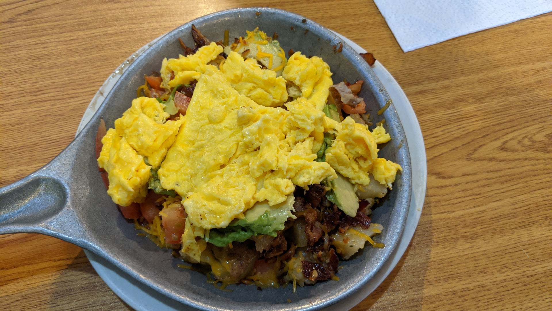 My meal was quite bland, aside from the old grease taste of the bacon. Just a guess, but it appeared that the bacon in the skillets was likely the leftover bacon from the day before. 🤷🏻♀️ There was no flavor in the potatoes which were overcooked. The toast was unremarkable.