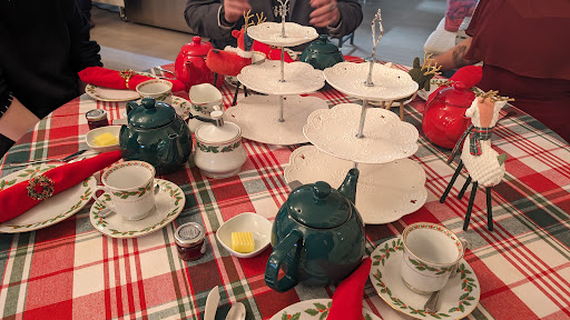 We arrived about 10 minute's early for our 2:15 time and were sat down. The table was still done up for Christmas, and everything was set up beautifully. I really loved the atmosphere, it felt cozy as it flurried outside. Then we were given cards from one of the owners, I believe his name was John, and he gave a brief explanation on the tea, explained the unlimited refill policy, and on what to do since we hadn't been before. (He also took a group picture of us on request at the end of the service! Thank you!)