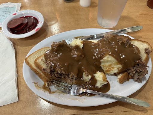 The biscuits were so light and fluffy, eggs cooked perfectly and sausage was great as well. Husband’s meatloaf was perfectly seasoned and cooked to perfection.
