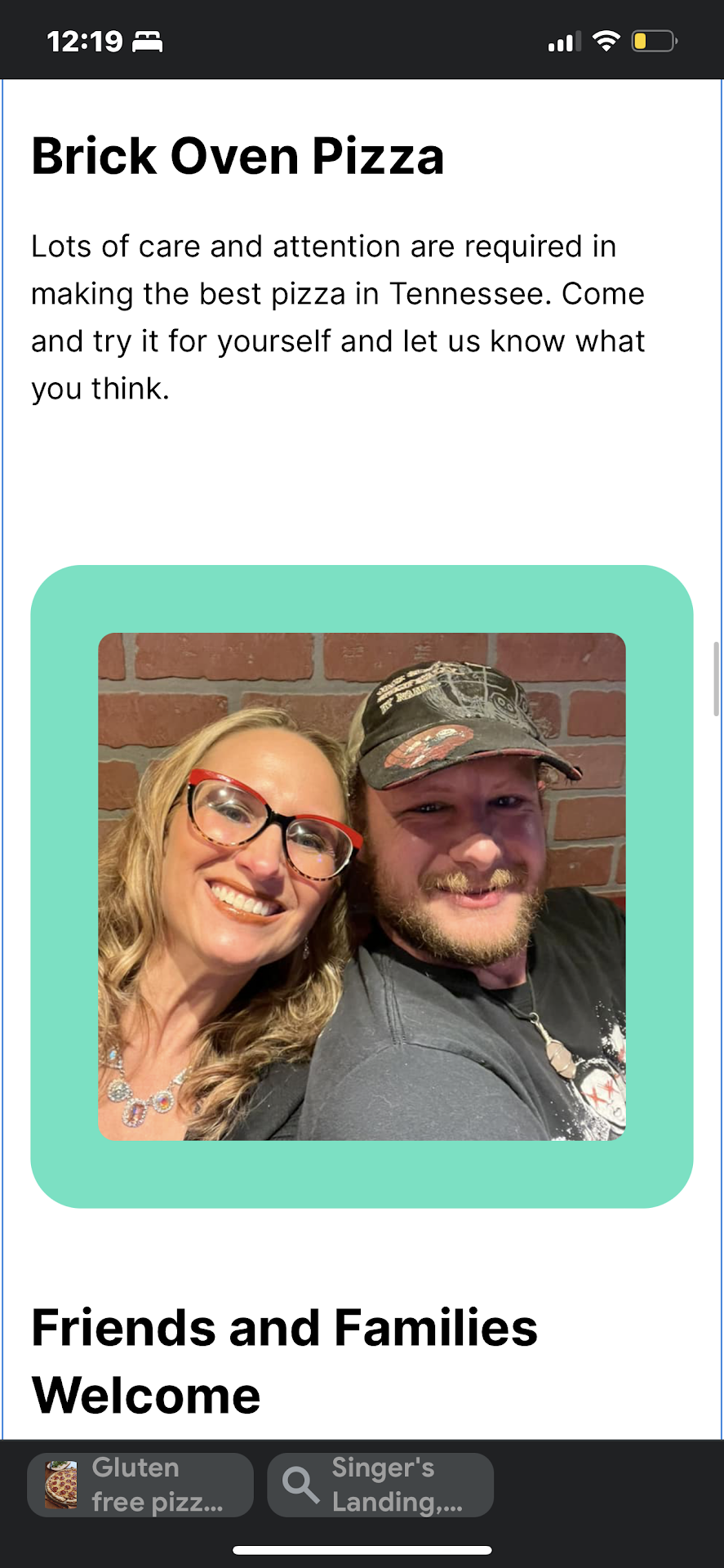 Read moreI wish I could review the food and service, but you see, we could not eat there. they were too afraid one of my two 14 year old daughters would somehow 'get hurt' from their pizza oven. You read that correctly - 16 and up - are allowed to eat here. We spend almost every weekend in the spring, summer and fall in Smithville. We are a family of 6 and love pizza. I figure our family alone is worth $2,000 / year if we were allowed to eat there, so given the lake crowd around here with kids they are missing out on thousands of dollars of revenue with this galactically stupid restriction. Its so stupid, you will not even get my 'to go' business. What a shame. Ha - and you want to know the funniest part of all of this - we actually did eat here last year. Despite my kids surviving that harrowing, death defying expereince, we could not eat their tonight. ...