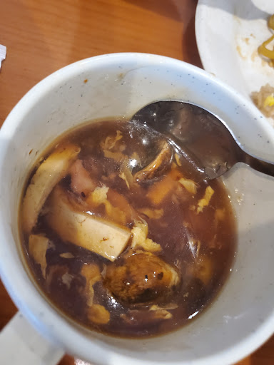 The top 3 items of mine were: stuffed mushrooms (heavy with cream cheese), the fresh beef and broccoli, and spicy string beans. The battered coconut shrimp was dry but I still enjoyed it. The orange chicken was fresh and I liked the sauce. They had 2 soup options, the classic egg drop and hot and sour.