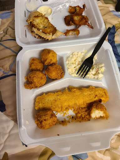 Hush puppies are always over cooked and have slight burnt taste. Always missing something from my orders. Might be utensils, hush puppies, slaw instead of fries etc etc. but the fish is awesome. And I like that big batter bits are...