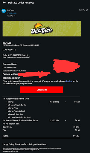 This was the first time I've had Del Taco since who knows when! I was actually really looking forward to it! Something different. Anyway, I put a mobile order in for the Big Box meal. Double Cheeseburger added ketchup and mustard, a bean and cheese burrito and added ground beef, soft taco normal, kindle fries large and a large power aid. Drive to location only one at the restaurant inside and out sat at the order box for about 5 minutes, no biggie, then someone said hello would I be using mobile order app, said yes I am, nothing for another 5, then again the same question, yes for Matthew, pull forward I pulled forward sat there for about 10 minutes. In my mind I knew they probably had to get stuff going from scratch since I was literally the only one there. I could see the whole crew chatting and looking at me, idk, maybe I looked goofy tonight only something, or maybe they're messing with my food idk, why its taking so long. Finally a young lady comes to window with a drink in her hand, I could tell right then that this order wasn't going to be right, she handed me a small or medium drink with some kind of soda in it, not what I ordered. I grabbed the drink from her and as soon as I grabbed it i knew it wasn't going to go well. As I am in transition from grabbing it from her to placing it in my cup holder, the cup collapsed, lid wasn't on all the way, and slid right out of my hand, cup actually landed in the cup holder but soda went everywhere. At that moment I went from 0-10 real quick because I had just spent a couple hours at the car wash taking care of my money maker thoroughly and this was my first stop after getting that done, so I had every right to get mad at that point. I hand her the half full cup back to her, my hand covered in soda, told her this is not what I ordered, I actually ordered a large drink which would be the power aid mountain blue blast or something like that. The look she gave me, especially when I said the lid wasn't on all the way, I can't mimic, but it was like she didn't believe me and/or it was my fault the lid wasn't put on properly. She ended up getting me the drink and shortly after brought a bag of food in a clear bag, box was sideways in the bag lid not closed all the way and I could see there definitely were no condiments, so I asked her for some ketchup and she came back with two handfuls, half of which ended up on the ground, then she handed me my bag. I was giving them the benefit of the doubt and said that maybe the taco sauces were in the actual box. So I drove around to park to eat. Opened the bag and the box. In that box, a small fry, I ordered a large, sorry, krinkle fries are my favorite, disappointed, opened up the burger, no ketchup no mustard and a single burger patty, box comes with a double, supposed to anyway, opened up the bean and cheese burrito the box comes with but I added ground beef, surprise no ground beef. Moving on to the soft taco if you want to call it that, it was a flour tortilla with lettuce and cheese inside that's it and lastly there was absolutely zero taco sauce. So not only did I spend a good bit of time cleaning my inside of my car only to get ruined 10 minutes later and the order I just spent $13-$15 bucks on, was all incorrect. I was pissed, I mean I was the only one there and I saw at least 5 employees in there and my order still came out completely wrong. I did not go back into that store because I was pist. Anyways, if anyone is reading this and orders from here, first make sure the lids are completely on your drink or drinks and when you do get your order, before pulling off, check your order for accuracy so you don't have an experience like I did. Highly disappointed, I was very respectful, I didn't mind the waits I had to wait for the very fact that I was again the only one there and it meant that everything would be fresh so to speak. Just...