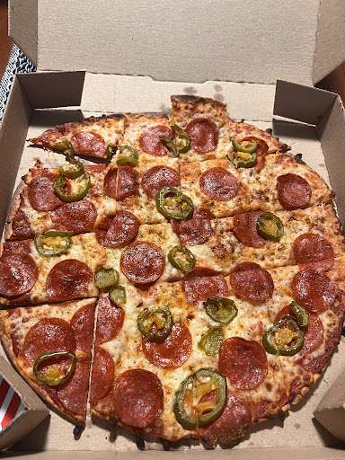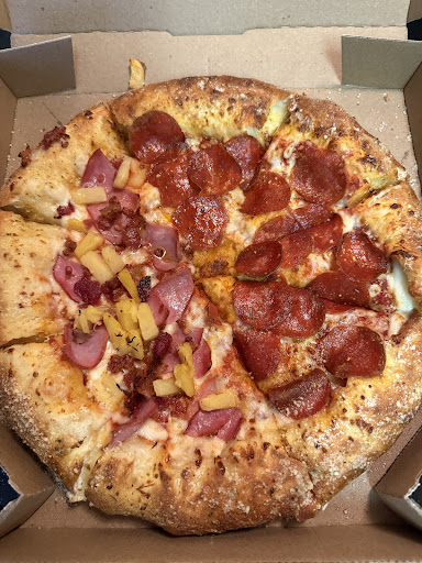 Read moreWe have been coming to this dominos for years. About half of the time our pizzas are sloppy, undercooked or wrong. We stopped ordering pan pizza because the dough was never cooked. Iâm talking RAW soft dough, so raw I thought it was melted mozzarella cheese. Inedible. We always order extra sauce, one time we got home and had NO sauce on our pizza. We always do half and half toppings, last time we got any evenly cut pizza with two slices of one and 6 of the other topping. Decided to try again today, an online window pick up. The young man with long curly hair didnât say hello, smile, nothing. Not a SINGLE word. He just opened the window, stared at me, I said hello and gave him my name. He closed it walked away opened it handed me my pizza and closed it again. Not hello, not thank you literally NOTHING. I worked in food service for a decade, I know how hard it can be but quality service isnât that hard. Today our pizza was ordered with extra sauce and itâs so dry you can hardly see sauce on the pizza at all. It looks like it was dropped in the box and served to us anyway. Very disappointing because we do enjoy dominos when it is actually good. You all have ran out of chances with us.I took pictures but it wonât...