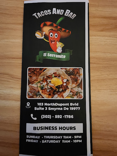 Read moreI had seen several positive reviews of this restaurant on the Smyrna/Clayton Facebook group. Hubby and I decided to give the place a try. Everything about Tacos and Bar El Serranito was absolutely wonderful! We were greeted by the very friendly hostess and shown to our table. Our server Jayara immediately came over, bought us chips & salsa and took our drink order. She answered any menu questions we had and took our order. My husband ordered the steakhouse burrito and I ordered the Quesadilla Mexicana with chicken tinga. Jayara soon returned with our food. The plates were amazing! Everything tasted delicious!😋 Jayara was very attentive during our dinner, bringing us what we needed before we even asked for it. The meal, service and location were all really good and we will definitely be...