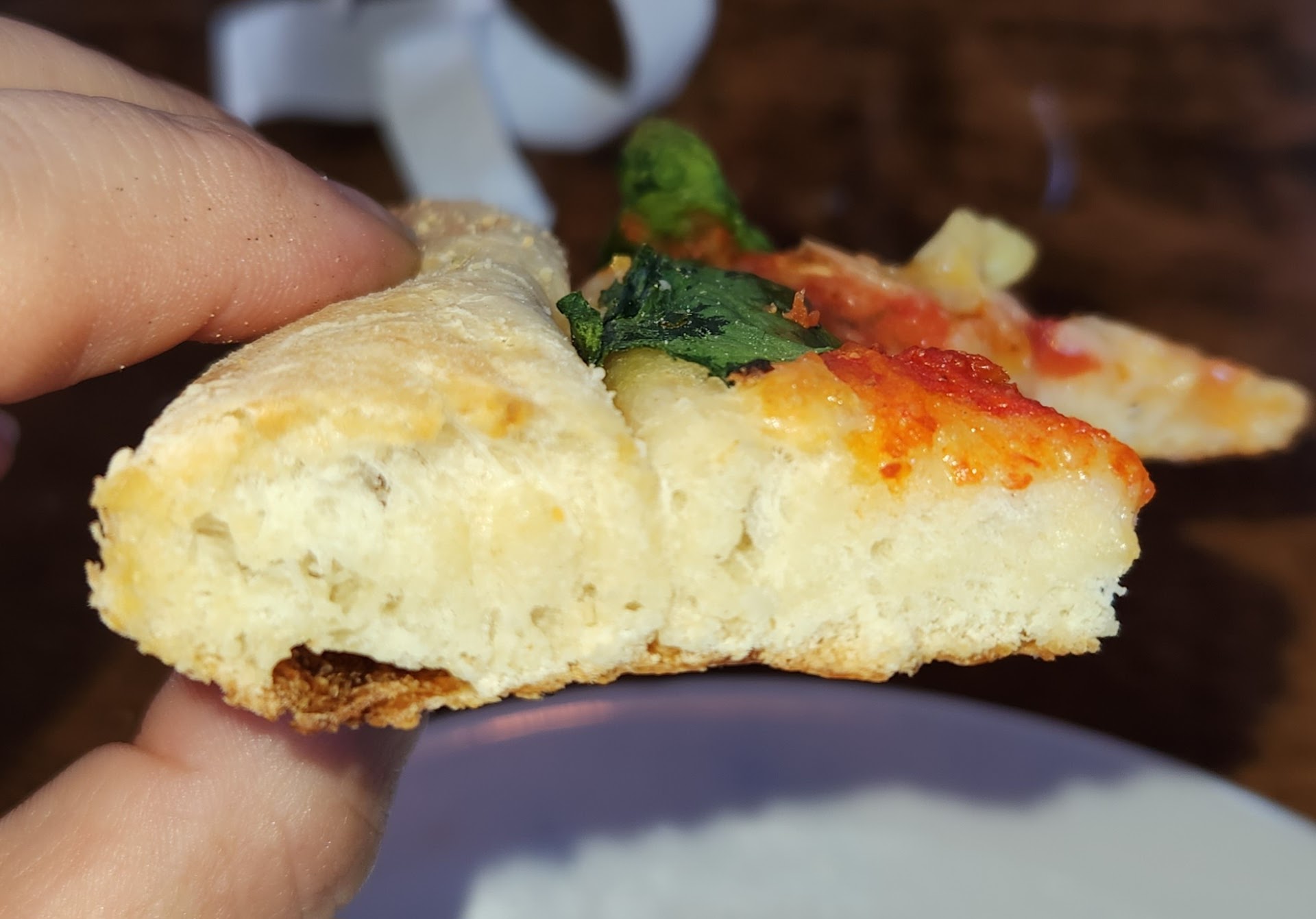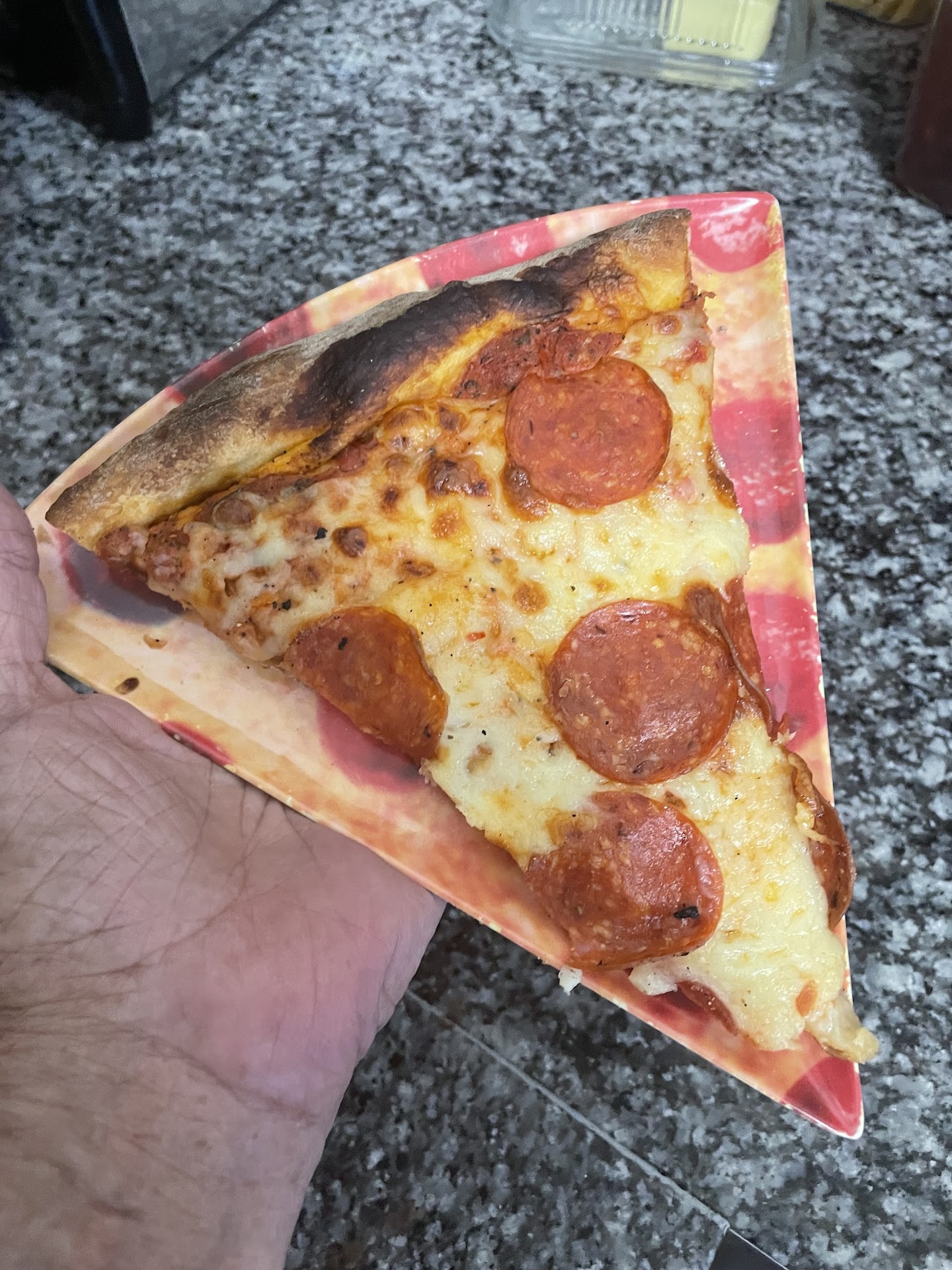 The crust was awful, the thickness was very uneven and it was chewy with 4 small pieces on one side and 4 large ones on the other. We were super hungry at this point so didn't care and ate it anyway.
