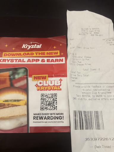Read moreI Love me some KRYSTAL’s However this Location is by far the worst I’ve Experienced in the last 4years and counting because it’s not many Krystal’s anymore. I usually don’t Review but I’ve had enough. I Patronized this place 4/15/2025 (wed) I only encountered 4 employees. Two Staff was sitting in Parking lot. Then getting out of the car a Mother and Daughter duo who work there. The Cashier was nice. The cook/prep looked irritated to fix order. The Sign CLEARLY Stated pick5 for $5.55. They asked where did I see it ?? Ummm outside on Billboard. The two outside persons proceeded to challenge me went outside and insisted I was wrong. I politely told them my eyeballs work. Then as I questioned again they made up a story about Management however the mother of the duo workers stated she was a manager. I don’t play about my food so since I had Already Paid before looking at my charges I didn’t won’t anything happening to my order from the Ghetto situation, so I just let it Ride. However once my order arrived I told them that’s isn’t okay because it’s hard out here and everyone dollars count these days. The fake manager proceeded to get rude brush me off like o well with no sympathy or compassion. When it was time to eat the Bread was ROCK HARD , and the Chili had multiple huge lump Ground beef with Hard FRIES. Lobby was Clean. Never again! And I Love Krystal’s. This is Unacceptable when my money is involved. This is not the 1st horrible experience at this Location. Where are the old honest and...