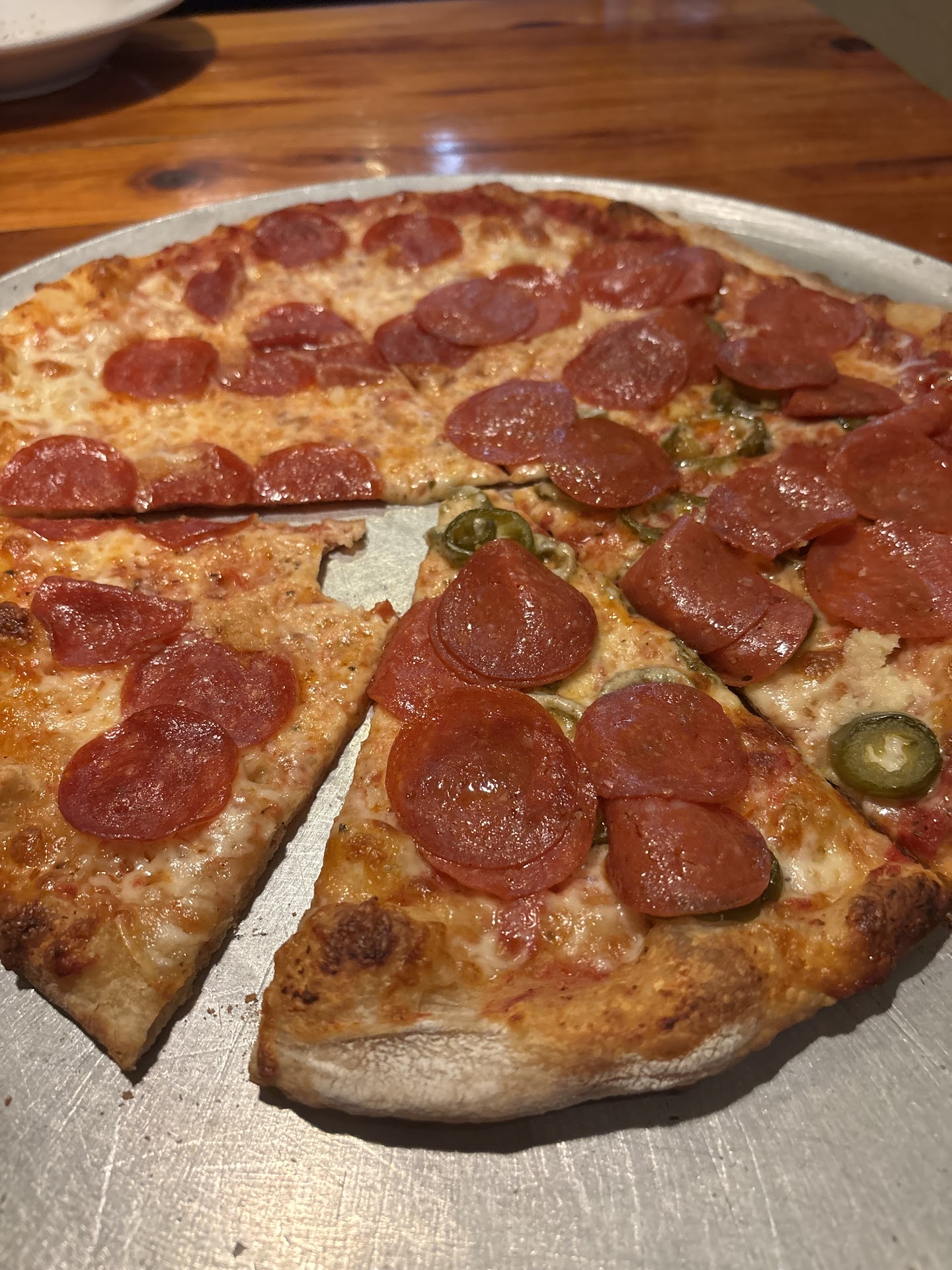 Read moreVery disappointed with my visit this time. I’m a regular here and come every couple weeks and drive 40 min just to come here because I love the pizza and hot sauce here. I ordered cheese sticks as an app and the marinara is served cold which is making my cheese sticks cold. Super disappointed in being served cold sauce. Then I ordered a medium pepperoni and garlic on whole pizza with half jalapeño and I’m served half pepperoni and garlic and half jalapeño with no pepperoni on it. I immediately tell Travis and he offered to either re make it or cook the peps and add it. So I said no need to remake it I’m fine with adding just cooked pepperoni on top. He takes the whole pizza back to the kitchen and the cook brings out my pizza and the pepperonis were barely even cooked and my pizza came back cold. Very very disappointed and this is my first bad experience. I usually have Jennifer as my server when I come and we love her! Travis is nice and did give me half of my bill but still. Left a bad taste in my...