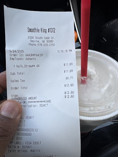 Read moreWe frequent this establishment regularly because this is the only Smoothie King in the City of Smyrna, GA; however, the leadership (owner and management) clearly don’t understand the meaning of quality customer service.