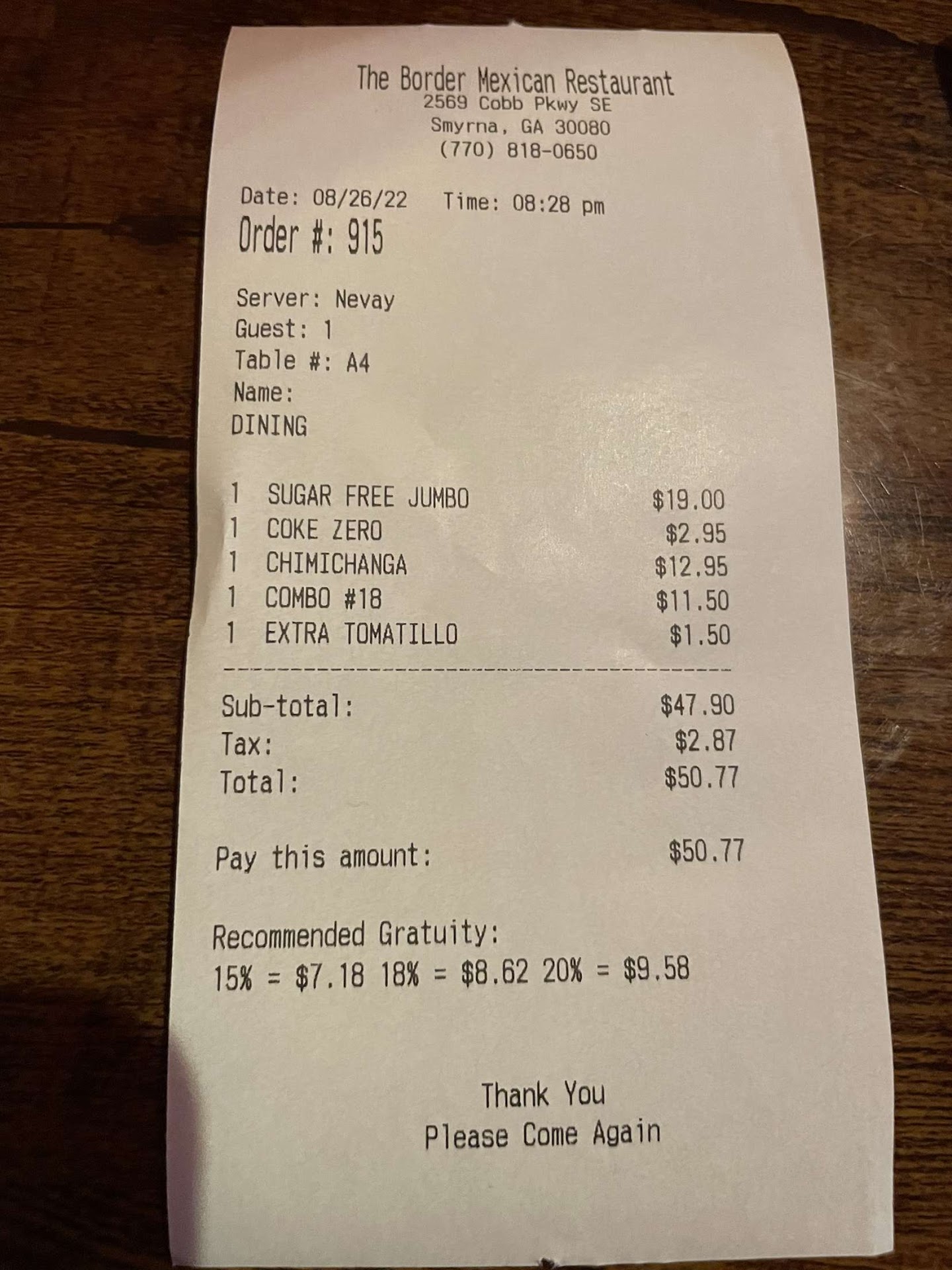 Read moreI'm J Marky Mark and I am Georgia!! First off I want to Apologize for not adding photos. I bounced my little buddy the extraordinaire Google pixel 4a 5G and it ⅙ pretty. Funny thing was I felt like my dog got runned over. That should tell everyone how I feel about this awesome phone. Not to worry though doc says he's gonna pull and with a few Google parts will be good a new. Now this is a review of The Border Mexican Restaurant right there on hwy 41 in Vinings Georgia. This is a place I frequent so I promise to add some pictures in the coming days. The fact that I go there a lot should already answer some questions. First and foremost , it's delicious. If you have read any of my reviews you know I prefer the independently owned mom and pop shop over the big chains. This place is right in my Wheel House.. The food is always hot and fresh and prices are very reasonable. I believe the fajitas for two is $13.00 and really is enough for two. They have Margaritas served several was ,,,, another reason I go there a lot... This is where I got the Vampire Margarita which is basically a frozen sangria margarita . Sounds good about right now don't it? I believe I have had about everything on the menu and all of it is good. Another one of my spots where you can throw a dart at the menu. You can't miss. But I have to say my favorite thing about The Border is when you go there they treat you like a friend. No matter how swamped they are they always try to accommodate and they do it with a smile. All of that combined makes for a really nice lunch or a great evening out to dinner. The only thing left to do is head.... Ok,,, I'm not saying that.. lol. If you have found this review helpful or liked it in any way please smash the thumbs up button. I am interested in what...