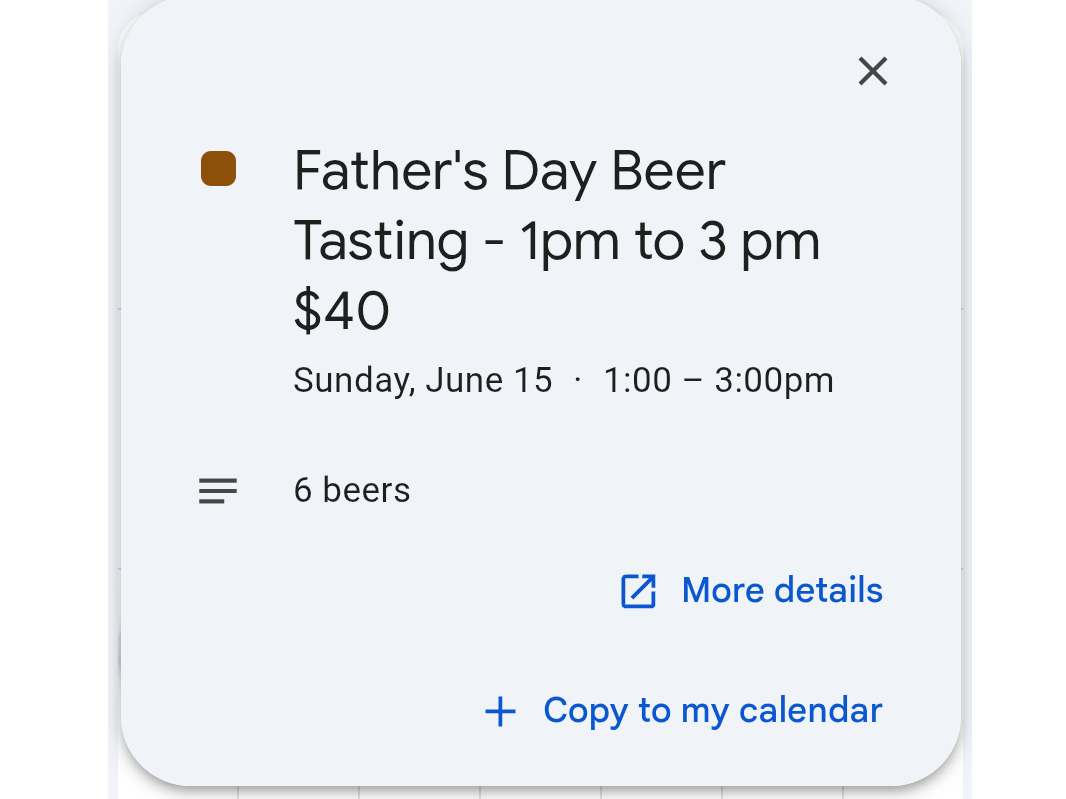 I came here for the Father's Day Beer Tasting. I had attended one previously and really enjoyed trying different beers and the host is very knowlegeable. It started late 1:20 vs. 1:00 PM and they didn't provide much details - so I ordered a snack - a very expensive snack. $17 for a charcuterie plate that included an abundance of nuts and 3 slices of meat and 3 slices of cheeses - each were 1 ounce. Very pricey.