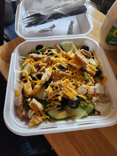 Ā Ā Ā Read moreThe pizza was waxy and didn't taste good at all The grilled chicken salad was good until I bit into a piece of the pit in one of the black Olives and overall I just wish I didn't get the sweet peppers cause it made the salad soggy The place is pretty small with 2 small chairs to sit and wait for your food. Cashier was standing around playing on her phone up at the counter and another girl was talking about making food to take home with her instead of making our food we were waiting for. It was a place to try but I don't believe we...