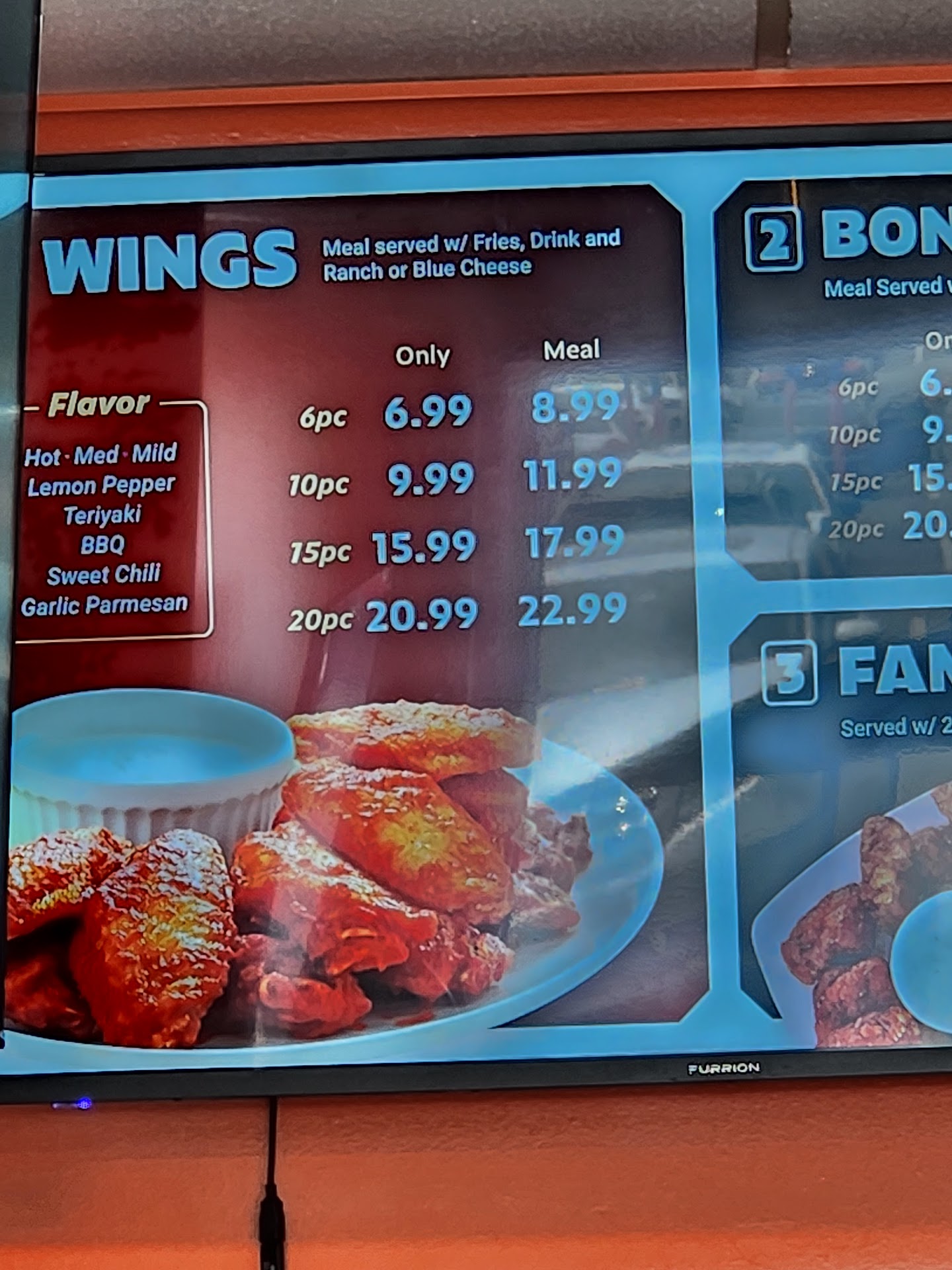 Read moreIts good. Great size wings and good flavor. The house fried rice is good, a little dry and its laughable that they only give you 3-4 shrimp on top of the rice tho. I thought it would be more for the price. The fountain drinks are good and I have no complaints. I wish they had a better rewards system for frequent customers. As of now I have to remember to bring in my menu to get it marked off in order to get a free combo. I wish it was automatically keeping track by phone number or something but again its good. If there was a small complaint I would say stick to the crinkly fries over the big steak house style fries. They don't compliment the wings as the crinkle fries do. Kids don't care for the steakhouse style and for the money I can't stand to see food wasted. It's hit or miss and you don't know what fries you are getting until they open the box. So that's probably the only thing my family...