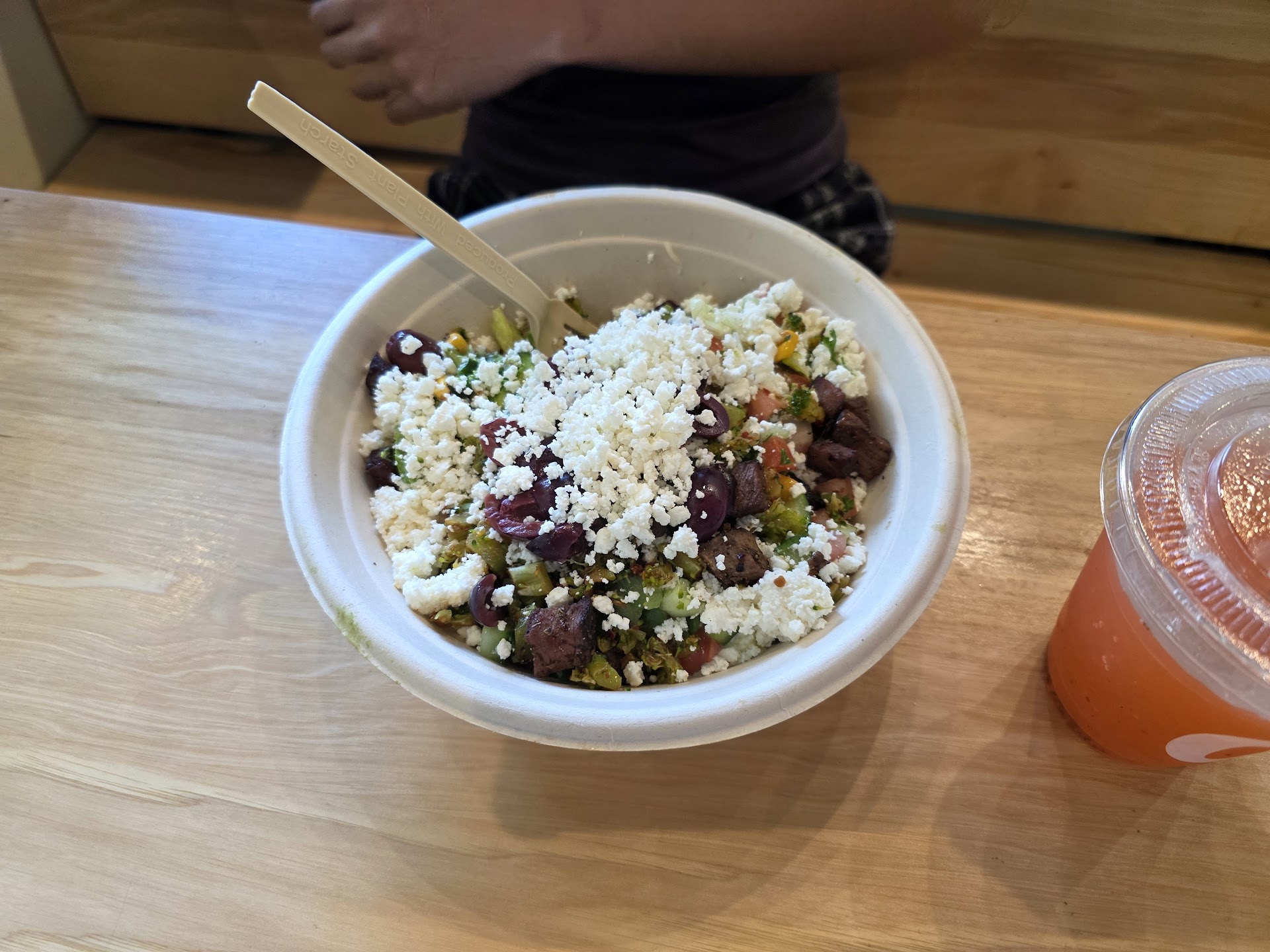 Since the steak was unavailable, I opted to create a custom bowl with chicken instead. When I finally received my meal, I found it to be just average at best. While the ingredients were fresh, the flavors were somewhat muted. I expected bold Mediterranean spices and vibrant, well-seasoned meats, but the overall taste was bland and forgettable. I kept thinking that places like Chipotle — while a different cuisine — deliver a stronger punch of flavor and satisfaction at a similar or lower price point.