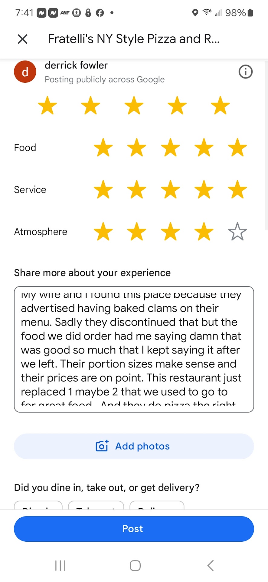 Fratelliās in Snellville has long been one of my go-to restaurants in the area. Over the years, Iāve found the food to be consistently excellent, with fresh ingredients, flavorful dishes, and a menu that delivers a satisfying experience every time. The service has also typically been very goodāattentive, professional, and welcoming, which is part of what has made Fratelliās a place I recommend to friends and family. For that reason, I was especially disappointed by what happened on my most recent visit this past Friday evening.