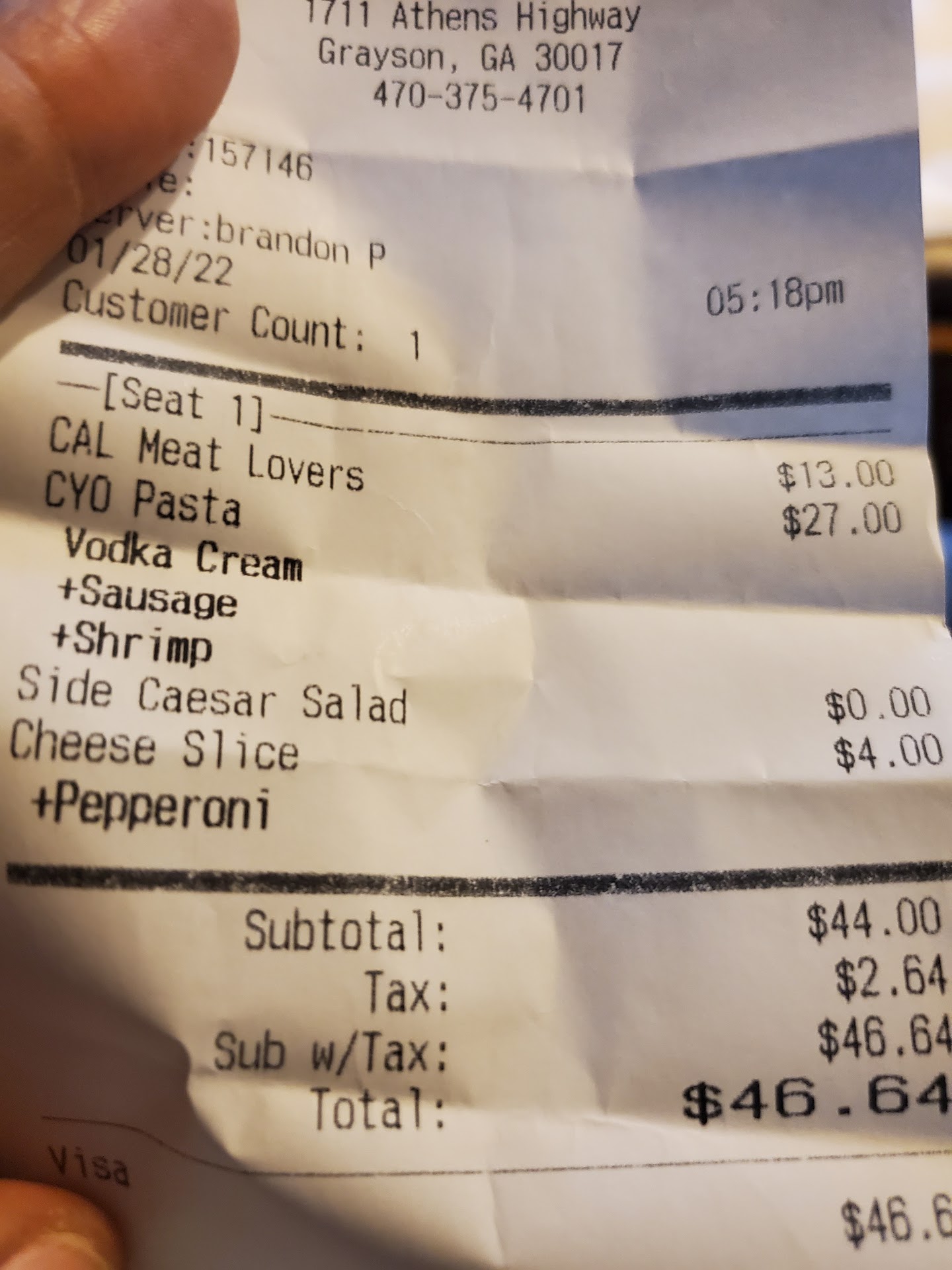 Ā Ā Ā Read moreUpdated review: Meat lovers calzone? Does this look like a meat lovers calzone? Ordered over the phone, got there in 30-35 minutes. Waited 40 mins once I got there, for this young man to place the order incorrectly, even AFTER I asked him, twice to confirm the calzone. I asked, because i could tell he wasnt listening. Then when we added a slice of pizza, he said that would be about 15 mins, sure, no problem. Some 30 mins later, we asked what was the status. They gave away the calzone, now they are making another one, and that would take 7 mins. 15 minutes later, we ask how is that calzone looking... He says, let me check. He goes in the kitchen and starts packaging others customers orders that came in AFTER us. We ask the bartender to cancel our order, she nicely goes to check, she brings the order out, which is short of the slice of pizza. Now i can only imagine, our food was just sitting some 45+ minutes. We check the order, we don't slice open the calzone, but SURELY now an hour in, this calzone with a pepperoni on top, has to be, a meat lovers calzone... BUZZER! You guessed it. It was NOT. So now, we dont realize this until much later, but now i am irritated. Its not just a wrong order from what was my favorite resteraunt, but this kid and whomever placed a pepperoni on the cheese calzone, was a bad joke, like my receipt says "add pepperoni" and he added "a pepperoni"! WE use to bring GROUPS here pre pandemic, loved the food, even when they got an order incorrect, they'd always make it right, but this kid, not only DIDNT listen, but probably should NOT be at a to-go counter on Friday. Very disappointed in what used to one of our favorite spots