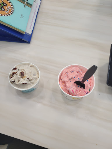 Read moreI recently took my grandson there for a treat. He was happy with the mixture he ordered; I ordered an ice cream cookie sandwich. The picture on their menu and promo poster showed about 3/4" to an inch of ice cream evenly spread between two cookies. Instead, I got two cookies with a small lump of ice cream towards one side. Aside from that, we had to unstack the chairs and move a table away from the wall to sit in the restaurant - the attendant couldn't be bothered to do it. There were no napkins in either napkin dispenser. There was no soap in the bathroom. There was no toilet paper or paper towels in the bathroom either. Of course these days we're shamed into tipping before we know if service is even marginally decent, but that attendant surely didn't merit the tip I included when...