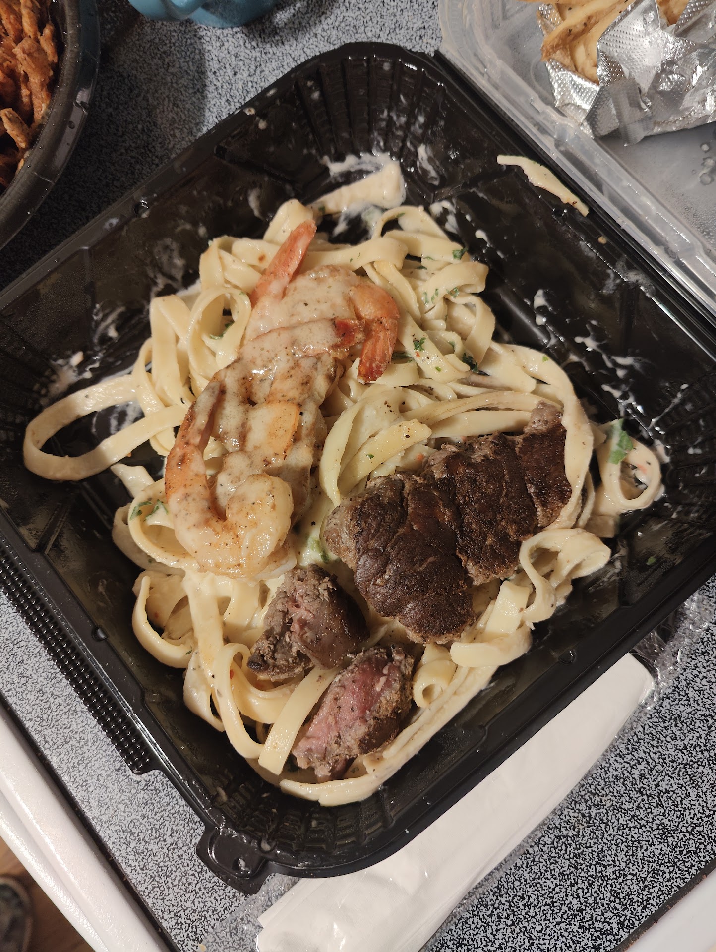 Read moreMy husband and I came here to get out of the house on Valentine's Day. Had an 8:15pm reservation and got sat pretty quickly. I'll just get straight to the point. Our waiter that night was always in a rush. I get that it was a busy night, but his rushing made him lose in customer service. He was in a rush when we asked about entrées and trying to get his opinion on things. I even asked him for a suggestion of a sweet sauce to replace the honey hot glaze for the shrimp they discontinued, he said they didn't have none, but our Sriracha chicken came with a sweet sauce that I LOVED. The bread plates they brought us was disgusting.. still had old food on them. We asked for a different set, those were dirty as well and it made us skeptical about all the other dishes they brought out to serve us. Our food didn't come hot (our appetizers did and they were yummy 😋). My husband's steak was room temperatured as well as my steak, and it was cooked medium instead of medium well. We pointed out a good amount of issues to the point my husband didn't even want to have them fix our steaks and I said I'll just eat mine at home. Just didn't want to bother them anymore. My shrimp that came with the steak (advertised as a duo) were smaller than quarters, and it only came with 4. Mashed potatoes were cold and hard. It only took one scoop to put them in a togo box and I had only one bite of taste. The cocktails from the bar were far from great- filled with ice and just watered down. In positivity, our waiter did ask us many times if we were okay and needed anything. He remembered to bring all of what we asked for such as more dinnerware, drinks, and even sauces- I just wished he wasn't so flustered to 'get the task done' so that he could took a little more time to serviceus rather than hurry to put the order in. Eberyone else was friendly as well. I do recommend they get a new dishwasher and better drink making with the bartender. Oh, and not to let the food just sit there getting cold before it is served.