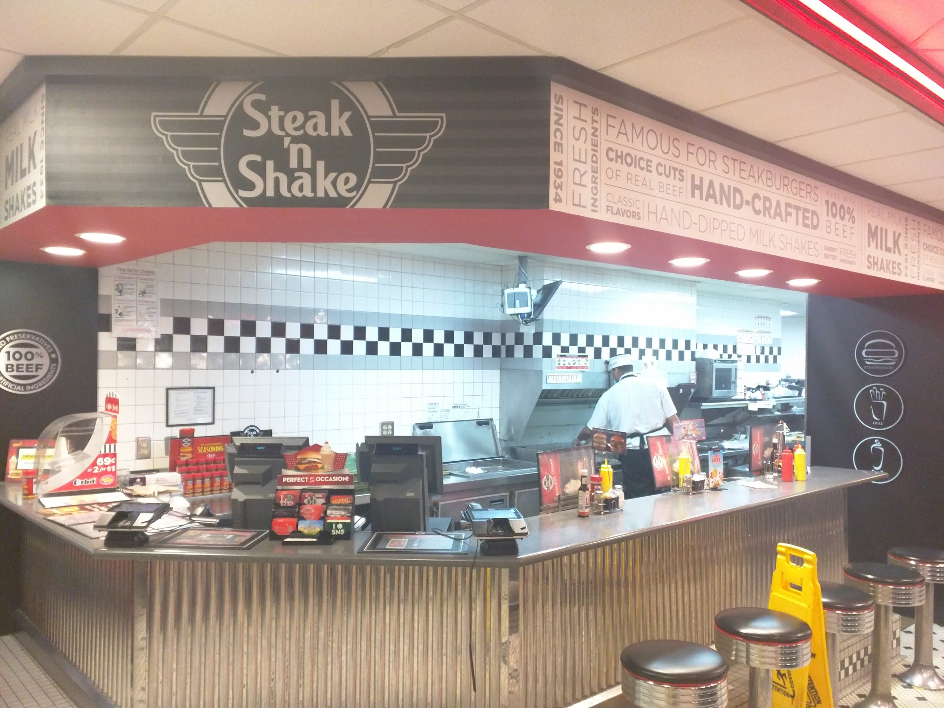 Read moreFind another location to eat at. Everytime I have came here in the drive through it takes 40 mins to get my food. The last time I was there was my last as I found hair in one of my burgers(thank god before the person ate it). I did go in to exchange and the manager did exchange however that added another 15 mins on my time. So almost an hour for Steak and Shake is crazy when I am not dinning in. Plus although he apologized, he didnt offer anything free or to refund me for the meal that was affected. Which I thought was the least he could have done for the inconvenience. Im not sure whats up with that location though. I have been at others that were just as busy and it runs alot smoother. At first I gave them a pass cause Im like okay its super busy they are doing their best. Maybe they dont have enough staff that day. However, the day I went in I saw alot of staffing, but alot of ppl just not pulling their weight. The Manager was working the register. And there were three ppl waiting to pack one bag for the drive through and only two people cooking, but only one person actually putting together things after its been cooked. I think a district manager needs to come in and retrain the manager on how to manage his location. Also I want to say that when I went in the place seemed clean to my standards in the kitchen for a diner. I observed the cooks and they didnt have long hair which is what we found in the burger side when we unwrapped it. So it leads me to believe that someone dropped the burger and decided to wrap it up anyway and serve it. Which is plain wrong. They get two stars for being friendly and for their potential of becoming a...