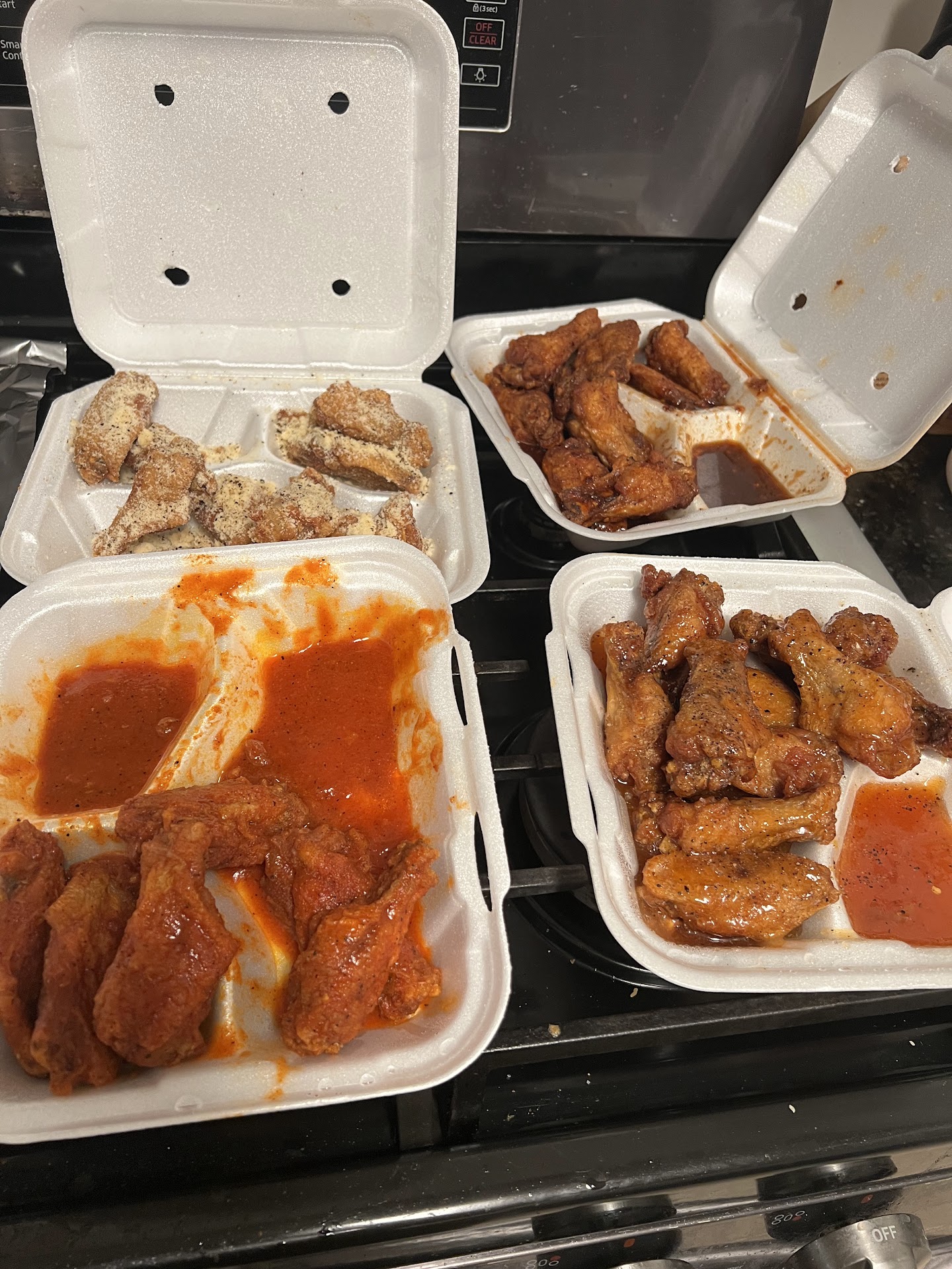 Read moreOk so this past Father’s Day weekend we had a crazy cool day and decided to go to the pool and enjoy some libations. Which led to my Husband wanting chicken wings. Our neighbors told us about this place and we had just enough time to place an order and pick it up. Staff answered quickly and took our order. They also waited for us to get through Saturday night traffic to get there. We order nuclear, garlic Parmesan, hot honey garlic pepper and Carolina wing sauces. Our favorite by far is the hot honey garlic pepper and nuclear (which by the way for hot wing people is more like hot vs nuclear ). Place was super clean (they are renovating and say they will start letting people dine in soon). Dong (yes that is his name) is one of the new owners and made sure all of our food looked as expected before packing the boxes into bags. We ordered the 60 piece/ 4 wing sauces and blue cheese dip. Oh and some season salt fries! Fries were salted at my request. This will now be our go to wings place since moving on this side of town. Picture is after we already started eating because we...