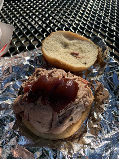 We arrived at around 615pm on a Sunday night and they close at 7. The parking lot is small, maybe only fits about 6 cars. The restaurant is also small and doesn’t appear to have dine-in currently. The man ahead of us seemed upset that they were out of hot links but showing up within the hour of a barbecue place closing one has to anticipate that some of the day’s menu has run out by then. Just as I was ordering they believed they had run out of pork but the gentleman in the back had miraculously found another tray! I was ready to order the tri-tip as a substitute but instead went with a Pulled Pork Sandwich as my original pick. You order inside and they will bring it out to your car rather than having you wait inside.