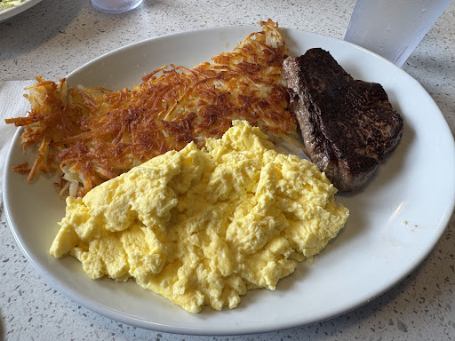 My husband got the chicken fried steak, and while he liked it, it wasn't anything to write home about. Portion sizes were.... also average! I imagined I'd get this huge plate given how other reviews described it, but it wasn't crazy. Just... two slices of average toast, a lump of eggs, and two stout sausage. Filled me up, but again- nothing spectacular.