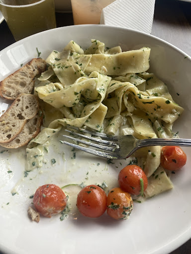 For starters there were five of us, the hostess sat us at a table for four people. The hostess did not bring another chair â we had to steal one from one of the other tables. When the waitress came over she was baffled that there were five people sitting there. She took our drink order and gave us another minute to look over the food menu. Soon after another waiter stopped by and told us heâd be our waiter for the evening and wanted to take our drink order. We explained that the other person was our waitress and she had already taken our drink order. When the drinks started arriving the food runner had no idea what she had just brought over (ex. she brought over a cider claiming it was a pale ale). We then ordered food. The overpriced Pesto Pasta, and I cannot stress this enough, was the most disgusting thing I have ever tasted. First of all it wasnât pesto, it was some cream sauce with parsley thrown in to make it look green. The noodles had clearly not been seasoned at all (who doesnât salt their pasta water?!?!?). The size of the beet salads were an absolute joke and the steak sandwich was essentially made of rubber. My first suggestion would be to stay away from this place. However, if you find yourself unable to, I would suggest you order drinks and perhaps an order of the under-salted pretzels but...