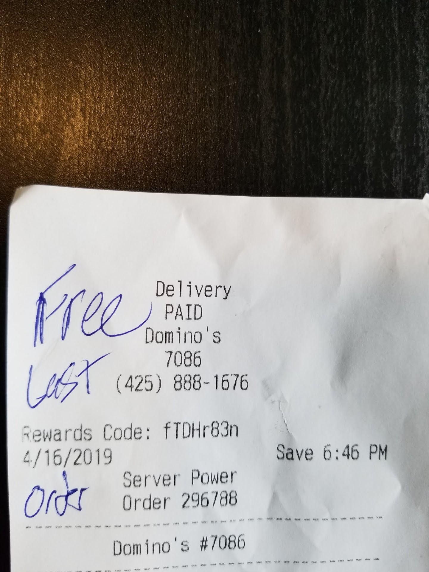 Read moreWhat do you get when you mix bad pizza with bad business? This place! Although I've had a few pleasant experiences here this last one had a bad taste in my mouth, literally and figuratively. Ordered pizza last Tuesday online, took around an hour for it to arrive, usually not something i worry about too much. Delivery driver arrives and apologizes profusely for the lateness, I told him it really wasn't a big deal. He handed my receipt back and told me I would be able to call in an order my same order again for free and refer to this night "they will know which night you're talking about". I assumed they were really having a rough night so I gave him a 10$ tip and wrote on the receipt "have a better night!". The cheese on the breadsticks wasnt even melted, and it was doughy, and my soda was incorrect, but that's all beside the point. I called back to claim my pizza and was told by the "manager" who apparently was also the "manager" the night the first pizza was late that the driver did not have authorization to be giving away pizzas and that she could comp me a free medium pizza "but i should warn you, it could be a while wait, we only have one driver and he has to go to Fall City". This is obviously not the fault of the underpaid and overworked high school staff. Save yourself the headache and just go to Sahara, or Frankie's. I also contacted corporate but they can't do anything because this is under...