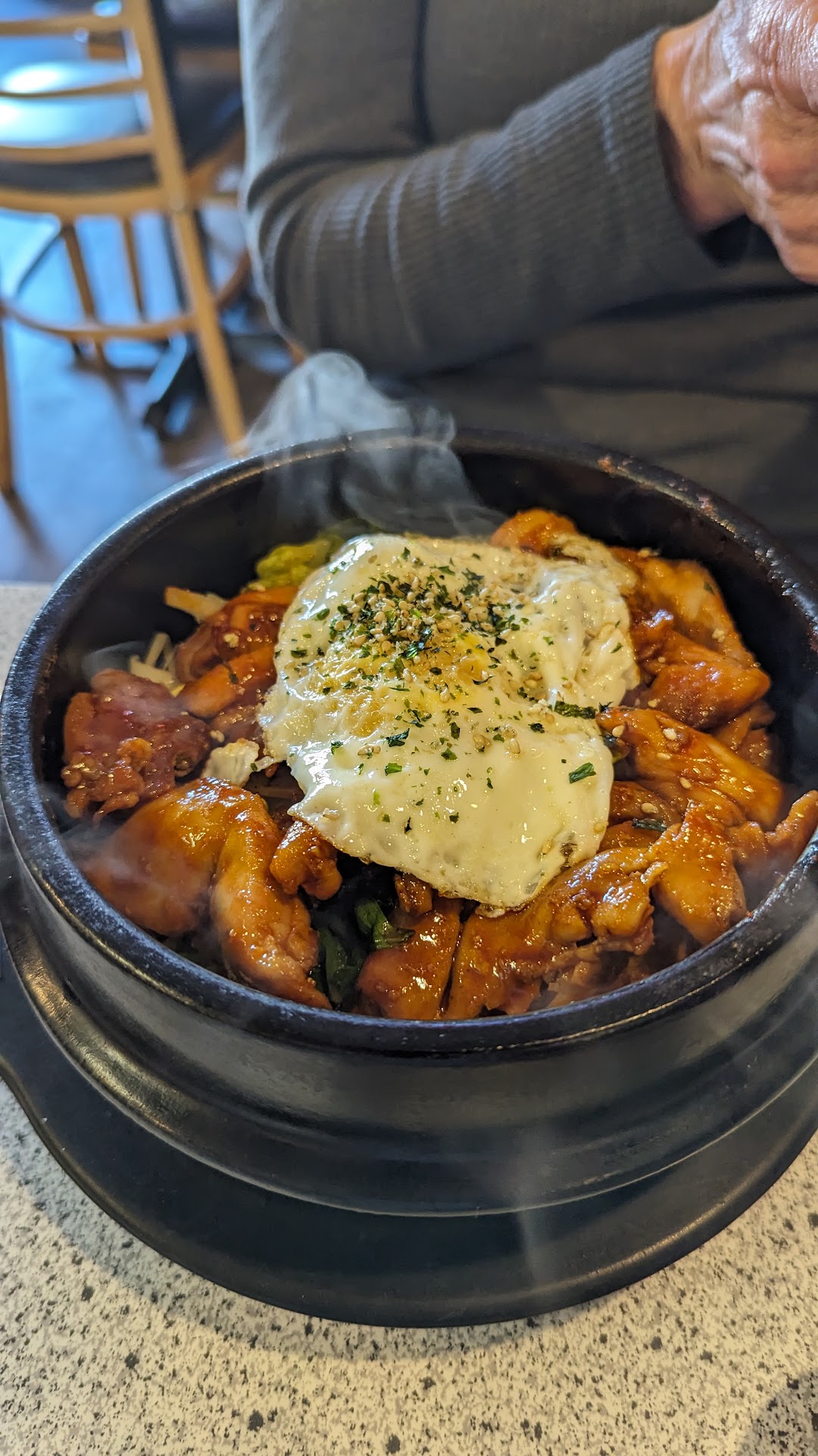 I am so happy we stopped here. We were greeted and helped by a lovely woman whom I assume is the owner. The hot pot bibimbop was delicious with fresh ingredients, the rice nicely crisped, and chicken prepared close to the way we have at home. It made my day better seeing her face light up when we told her how much we loved her food. It was like she cooked for us in her...