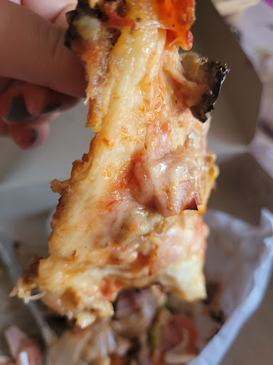 I'm just honestly tired of paying almost $30 a week for complete mush. The wetness always is soaked through the box at pick up and if my air-fryer and toaster can't un-mush the pizza... it's too mushy! This is an every time occurrence and it's getting to the point where being the only place for miles, unless you want gas station food, isn't worth it anymore. (This was supposed to be a 'Supreme pizza')