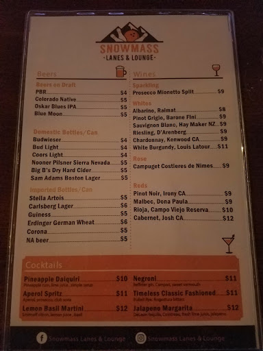 Read moreI recently visited Snowmass Lanes and Lounge and was blown away by their amazing wooden oven pizza! The taste was out of this world and the crust was perfectly crispy. The toppings were fresh and flavorful, and the overall experience was fantastic. I also appreciate Snowmass Lanes and Lounge's commitment to using high-quality ingredients. In addition to the delicious pizza, the service was top-notch. The staff were friendly and attentive, making sure that our experience was enjoyable from start to finish. They were always available to answer any questions and make sure that we had everything we needed. The wait staff were also very efficient and made sure our orders were taken and delivered in a timely manner. Overall, the combination of great food and service made for an unbeatable dining experience. I would definitely return to Snowmass Lanes and Lounge and recommend it to others. 5...