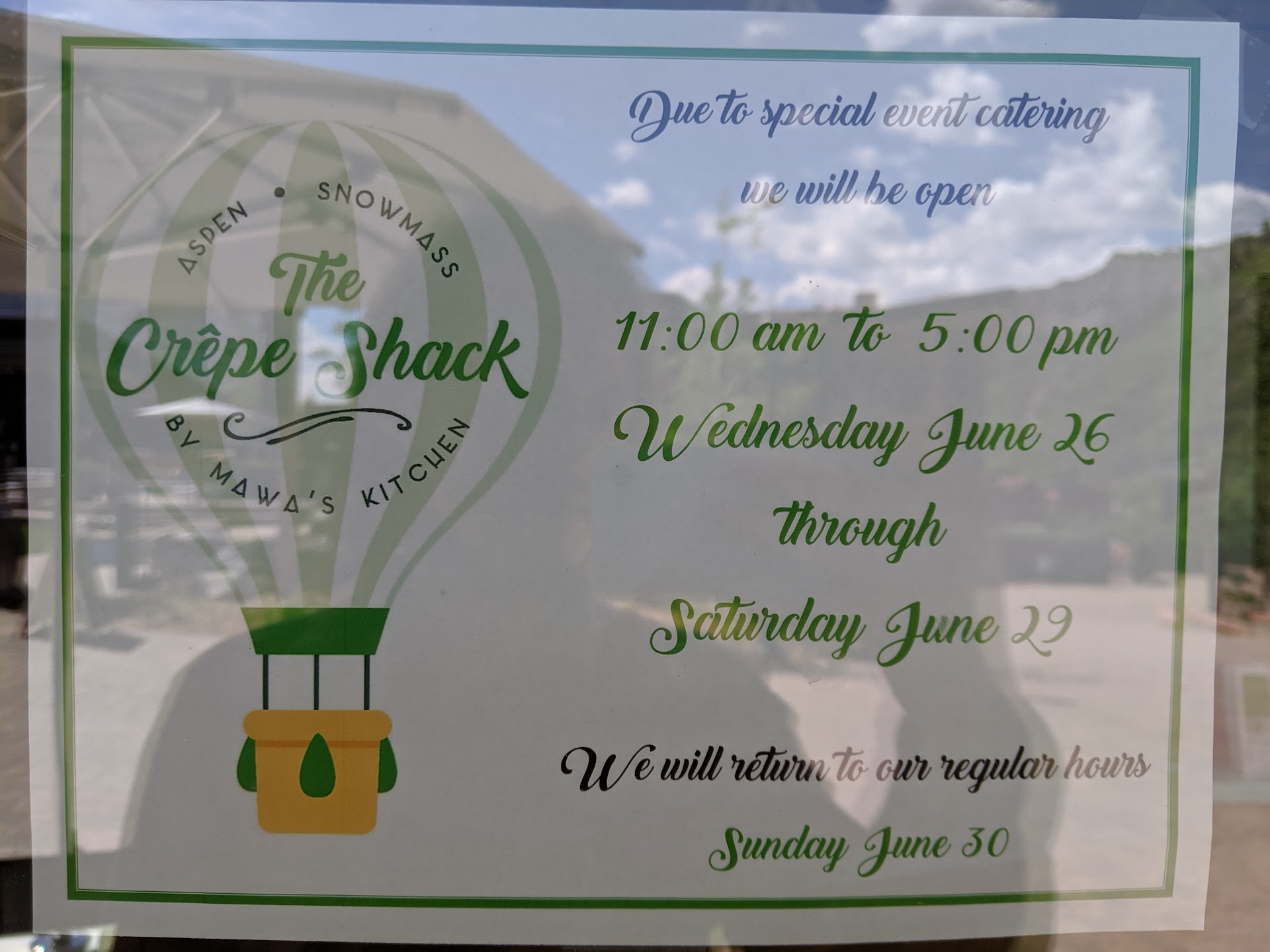 Read moreThe Crepe Shack is a fantastic spot to enjoy a delicious crepe along with a quick snack. While the prices align with the traditional Snowmass pricing, the quality and flavor of the food definitely justify the cost. One downside, however, is the lack of indoor seating, which can be a significant drawback during the harsh winter months when sitting outside isn’t comfortable. Regardless of this minor issue, the Crepe Shack excels as an ideal destination for breakfast, offering a variety of sweet and savory options, as well as serving as a convenient spot for a speedy lunch. Whether you're looking for a hearty meal to start your day or a light bite on the go, this place delivers a...