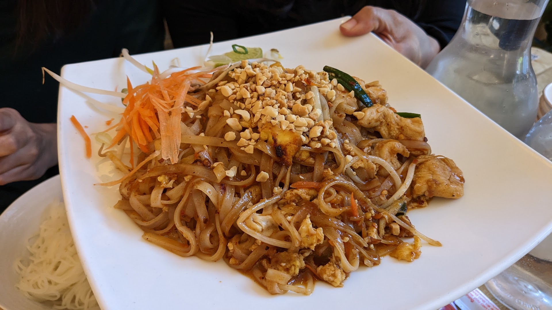 The food itself though: 1. chicken which seems to have been frozen, was watery and poor quality 2. pad thai that tasted like spaghetti 3. pad see ew made with long noodles (think pappardelle) rather than short rectangles 4. fried rice with uncooked vegetables and hard rice.