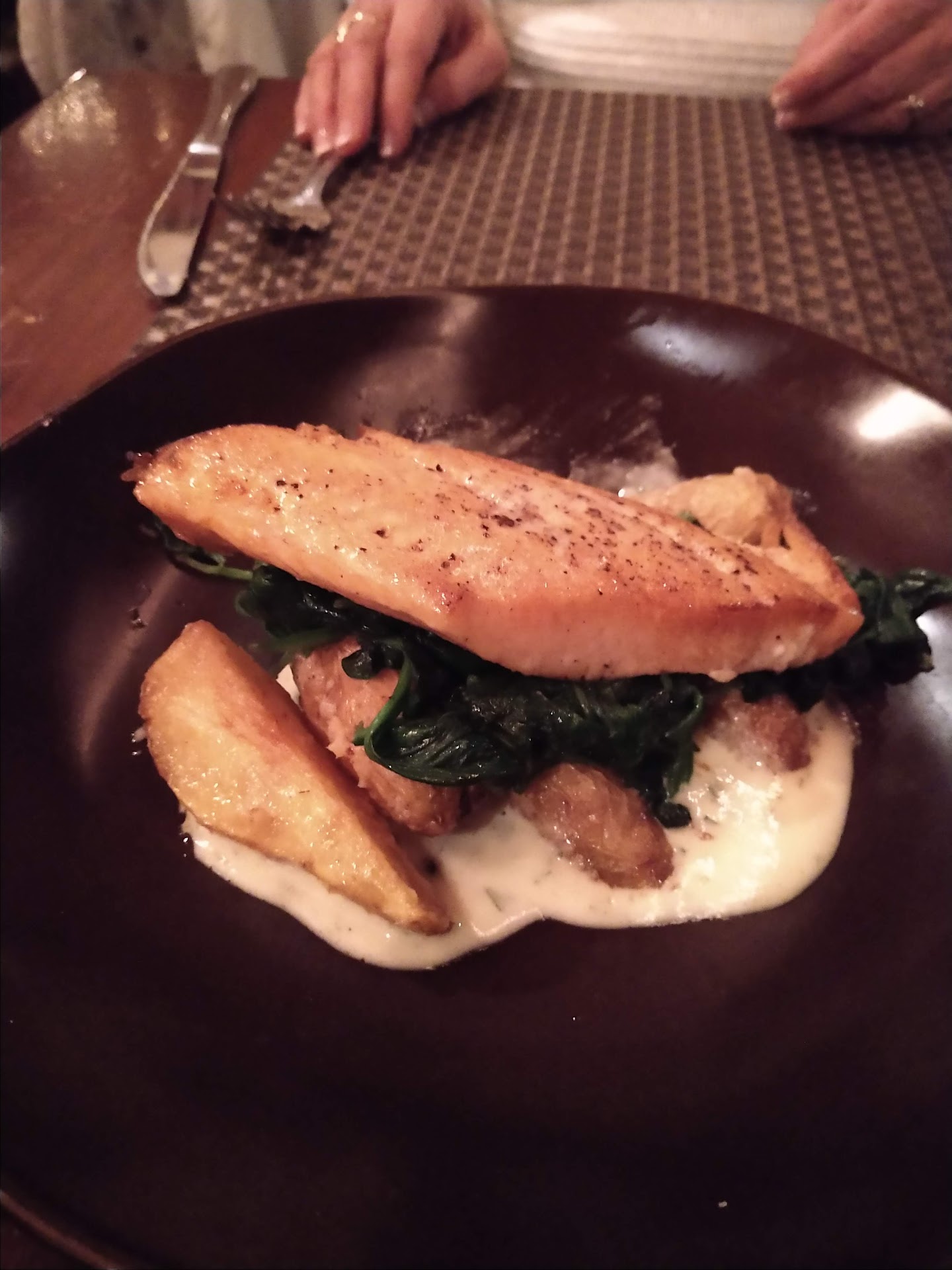 My husband and I went there for a nice lunch on a clear day, but a bit too cold for outdoor dining for us. We had a 12:45 reservation and came 30mins early and we were lucky they could get us in earlier.