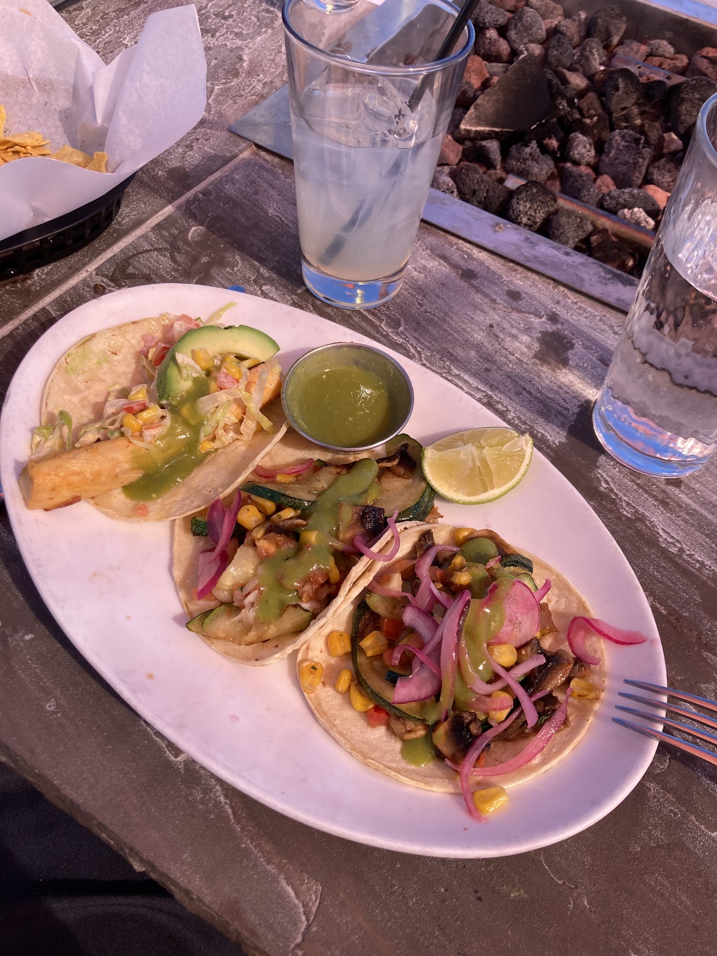VEGGIE TACO flavors were well balanced and flavorful, so much more than the FISH TACOS (mahi mahi), but I couldn’t figure out what would make the fish one better, maybe less fish, add more cabbage, or shred fish and replace the chopped avocado with an avocado purée? Idk, but order the VEGGIE TACOS if you want flavor and fullness. The mushrooms, zucchini, sauce, etc will melt in your mouth and destroy the taco shell but so worth the mess.