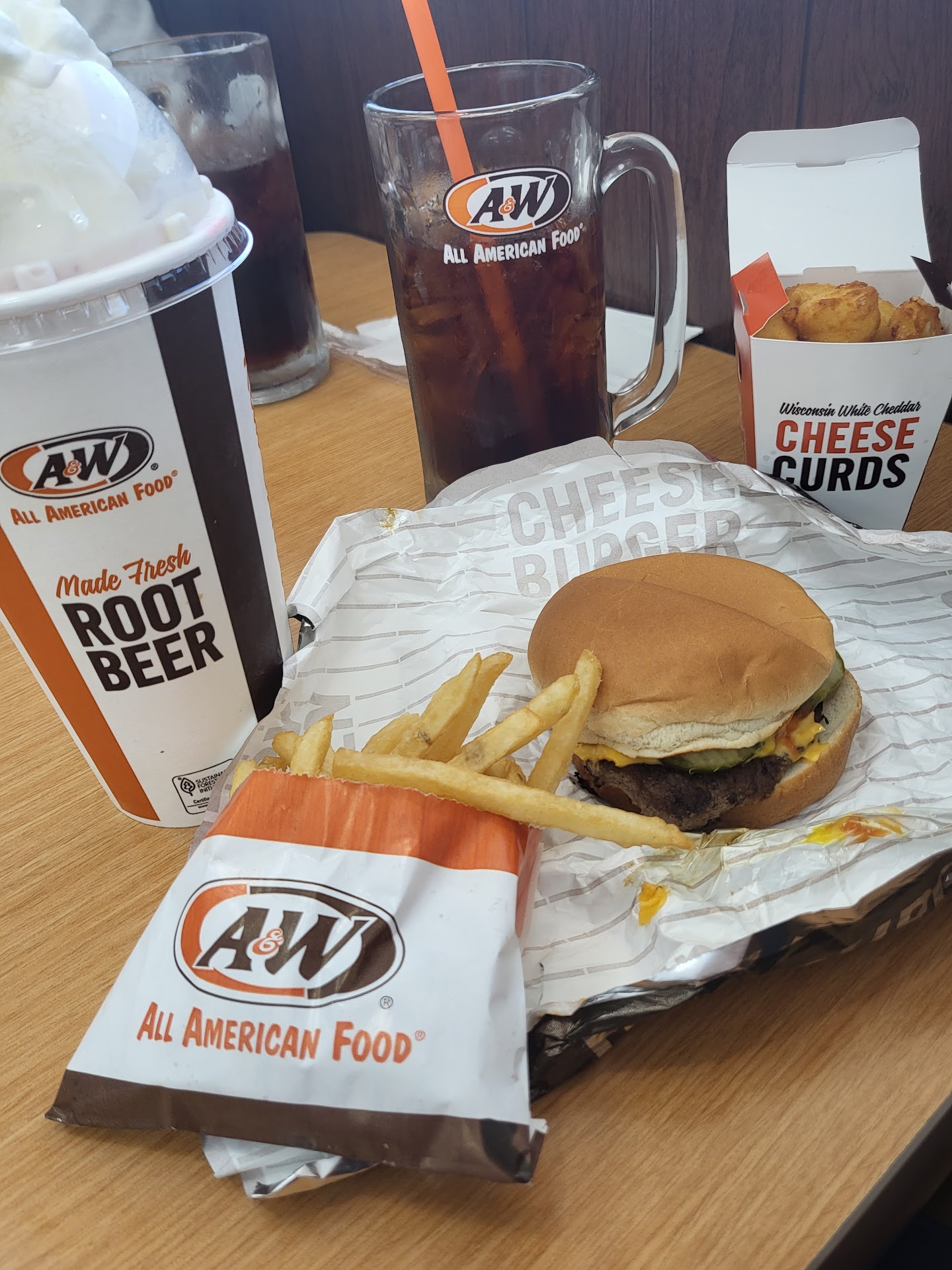I have been wandering the utah mountains my whole life and never had an experience like today. Let me give some back story.. It was three days ago, beautiful day honestly, weather was great as were the views in the area. I've had a goal to complete the Utah Cutthroat slam and up here was stop number one. Traveling up the yost mountains I was so excited. I get to my campground and set up for what I think would be a fun exciting couple days. BOY WAS I WRONG! A storm hit where my campground was and destroyed everything I had, atleast I think it was a storm. It was a slightly windy day and I had gone off fishing. When I came back my car, tent, and all my belongings were destroyed and thrown all over the place. I think a bear even pooped in all of my clothes, plus my cars tires AND doors were missing. I was out of service and 30 miles from the nearest person. I decided I would try for civilization in the morning so I went to bed. I heard sounds in the dark that night but I was so delusional it could've been anything, I remember some chanting I think, maybe some music. As I woke the next day I knew I needed food and a way to get to safety. I walked all day down these mountains only to find myself in another canyon... I had no clue where I was and I was STARVING. Fast forward to the next day and I was traveling down the mountains when I ran across a man in his truck. He agreed to let me down the mountain if I helped pay for gas. Happy to oblige I agreed! BAD IDEA... we go down the mountain and he starts driving only to pull over on the side of some dirt road and forces me out of the car spouting some nonsense about a cult he read about on the news. He threatened me family!?! I was too far from anyone to call for help so I had to sleep in a drainage ditch by the road. At this point I hadn't eaten in days and haven't had anything to drink besides a mountain dew I found, opened I might add... it didn't taste good. I thought I was going to die! I had a vision that night, some might say a dream but I'd say they're wrong. My dream was full of flying cheese curds and a river of root beer, it was euphoric, I woke up in tears and not even from the mental and physical pain. I knew I needed sustenance. I prayed to all that was holy and started walking.. I could smell something delicious and I couldn't tell what it was but I let it guide me.me... 18hours later and one toe gone (don't ask) I found myself outside the most beautiful thing I've ever seen... a Sinclair A&W COMBO GAS STATION. I threw up immediately. I walk in and let me tell you, the service was incredible. Great atmosphere and great music. I sat at the northern most table and it was an angelic experience. I order the double papa spicy burger and cheese curds with some fresh, delicious, delectable homemade in store root beer. It was so good I has that meal down quicker than a right hook by Mike tyson. I can honestly say this was the best A&W meal I've had in my life. Everything was amazing, truly. The kitchen was clean as evident by their sparkling floor I could have eaten off of and the food kept that quality. Not only that but the gas station had these cool gun pocket knives (would recommend) and a frazil spinning light thing. Reminded me an angel on a hot day. I would highly recommend stopping here if you are in town or hungry or bored or have extra...