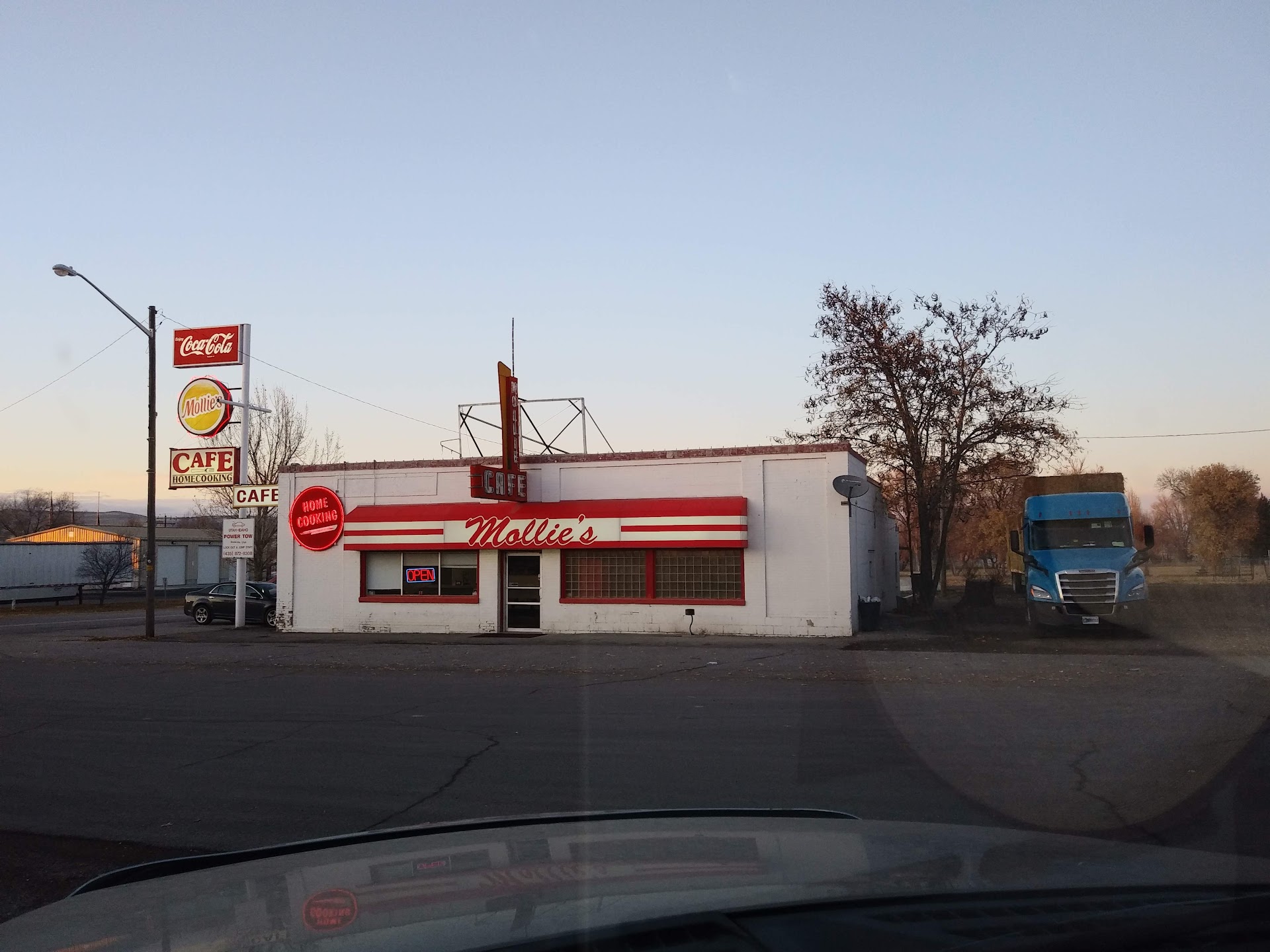 Well I think Thomas Terry is an idiot who lives in the big city and can't see past his own nose. I believe that Mr. Terry also enjoys tearing down true Americana of small towns. I have traveled between Oregon and Colorado for many decades and have stopped here to eat. NEVER once did I, or my family get sick from the food. And Mr. Terry needs to study up on "Food Poisoning".....It does NOT occur instantly, nor a few miles down the road. Mollie's may be a greasy spoon, It never claims to be a five star restaurant the middle of no where. I always have to laugh when I see multiple 4 and 5 star ratings on business's blog and one little douche bag 1 star rating. That tells me that someone is truly miserable in their own lives and wants to bring everybody else in the c'est pool with them. I know the little motel across the street is coolest little bit of Americana, Which would probably drive Mr. Terry over the edge. It is very dated and rustic. I don't know if they still do it or not, But the place had the honor system, You show up, you put your money in an envelope and put it in a slot where the room key is kept. You go to your room and stay the night. Next day you leave your key in the room and take off. We thought the was really cool. Rooms are clean just dated. They probably don't do this anymore due to all the douche bag criminals...