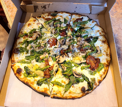 My only negatives are the size options and pricing. They only have two sizes, small (10") and really, really big (20"). There were 4 of us and some kids eating, so we opted for large pizzas. Two large pizzas and cheese bread (with tip) was over $80. To be fair, these were 20" which are quite a bit bigger than typical large pizzas. Still though, toeing the line of $100 for two pizzas and cheese bread was a bit of a shock. We still love the place and will definitely go back, but the pricing and size options will make this one of our "Special Occasion"...