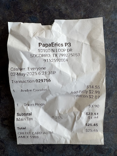 Read moreMy husband and I walked right into the establishment and were immediately approached by a tall, mexican woman who did not understand a word of english. While it is common for a misinterpretation of communication, there was a blantant, disgusting response from this waitress. She physically approarched my husband in an obviously sexual manner, making direct contact with his private area, and speaking sensually to him right in front of me. I was unsure if I was walking into a fine dining restaurant or a seedy bar with loose women in place of a "responsible, mature employee". I will never return to this papa's burgers restuarant and I sincerely hope no one will ever experience what I...