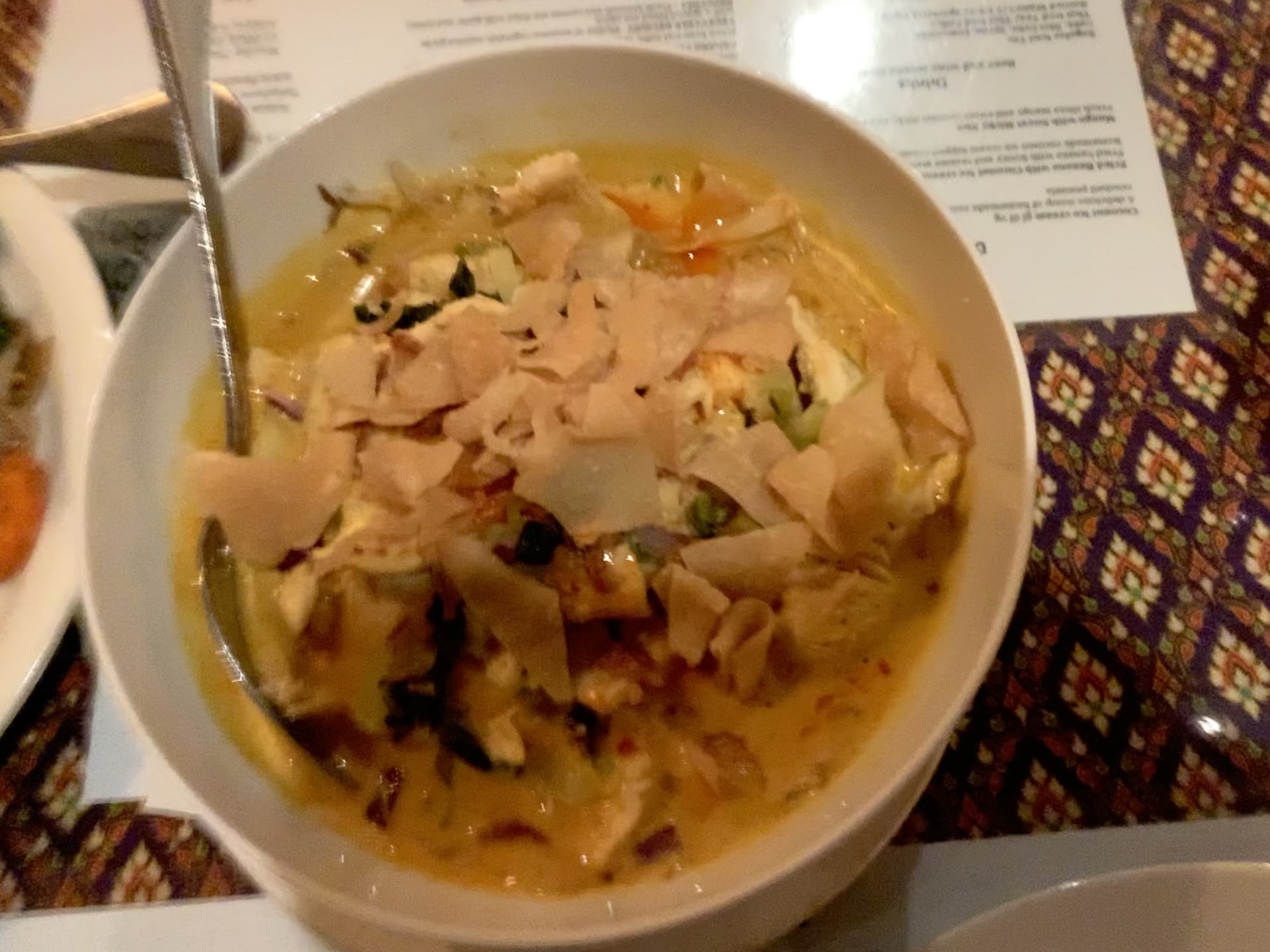 Read moreArrived right about 5:15 for dinner service (2 of us), with no reservations. We sat immediately. There were maybe two open tables, and about six tables already had apps on table. As people arrived after us, they were being told there was a wait. People arriving with resv were sat. We actually only came in for a Tom Kha soup, and chicken satay. So, we we're in & out pretty quick. (We were out just cruising around on bikes, stopped by at 4:15 & they were closed. So we returned for dinner service hours; to get that Tom Kha. Once you get ot on your mind...!!!) So you know, if their hours say closed at 8, they are closed at 8. They stop seating around 7:35, 7:40. If they close at 9, same scenario. We've been on the unfortunate side of arriving mere minutes after their cutoff time. And, we have witnessed it happen to others numerous times. The Tom Kha is a favorite, and always ordered. What we have decided though, the veggie version is best. The chicken is just too cooked through when it's in the soup. Eg. Cardboard chicken. And, not to be cheap, but my wife and I both decided that it wasn't worth the extra few bucks, because neither one of us ever enjoyed the chicken. (Put the extra dollars in the tip. The staff is always super friendly & attentive.) But, we do love the chicken satay. I mean, come on, anything with peanut butter. Don't make the mistake of going straight, and only to the peanut butter sauce, their other vinaigrette dipping sauce that comes with it is so friggin' delicious. Ask for a straw! And, the chicken (rib meat) skewers are moist and tender. (They're how you wish they would be in...