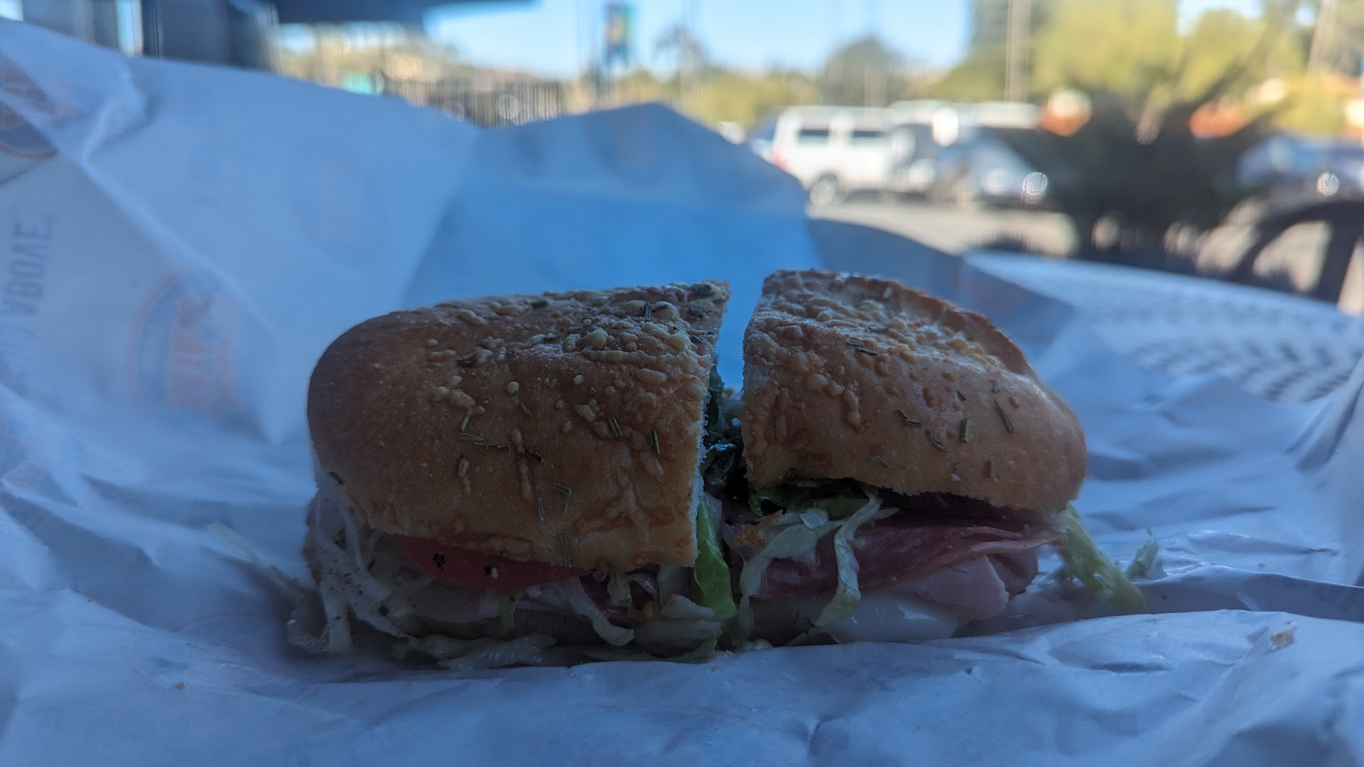 I rushed in and was immediately greeted with attentive smile and a fast response to fullfil my request. Mind you, this being my first time in a Jersey Mike's,...it was super neat, clean, and didn't have the mugginess of an over baked sourdough that made you smell like Subway. I hate smelling like cooked food, more importantly eating in a deli with poor ventilation.