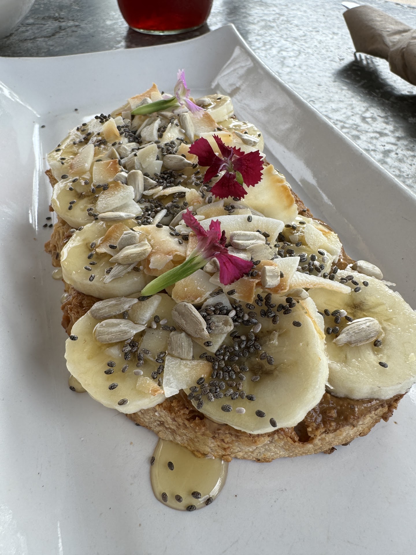 I also ordered a Delicious Toast with peanut butter, honey, bananas & seeds to go along with my Golden Milk.