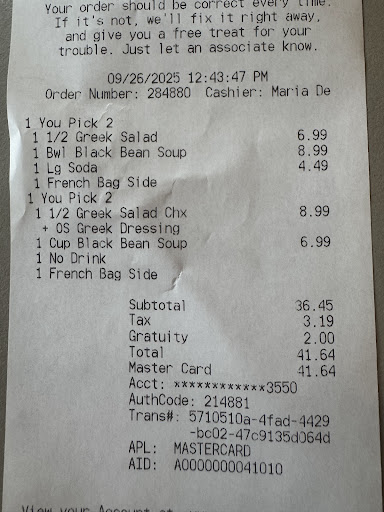 Read moreBig shout out to Crystal for helping me today. Don't get me wrong I LOVE Panera Bread! My go to is the half Southwest Chile Lime Ranch Salad with chicken and it comes with chicken, romaine, arugula, adobo corn blend, quinoa tomato sofrito blend, fresh cilantro, feta, avocado, and tortilla strips. However today I ordered on the Panera app and asked for no feta or tortilla strips. Instead I picked up my salad with nothing but cheese, chicken and lettuce. I was disappointed. I called and Crystal immediately offered a full refund and delivered me the correct order. Wow I did not expect that. I was so amazed by the amazing customer service I received. I really appreciate her and her team going above and...