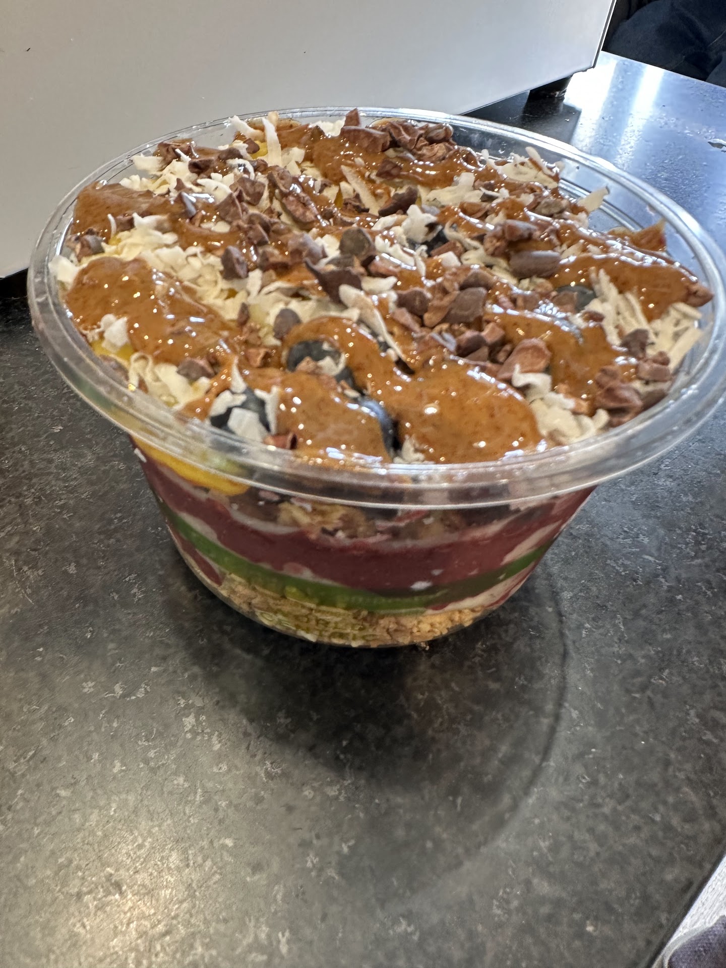 The AƧaĆ: They use the AƧaĆ Roots brand of AƧaĆ and other bases (dragon fruit, spirulina, mango, etc) which is my favorite brand. The bases are thick and hold up without melting too fast. They are also all delicious - Iāve tried the aƧaĆ, dragonfruit, and spirulina and loved all of them.