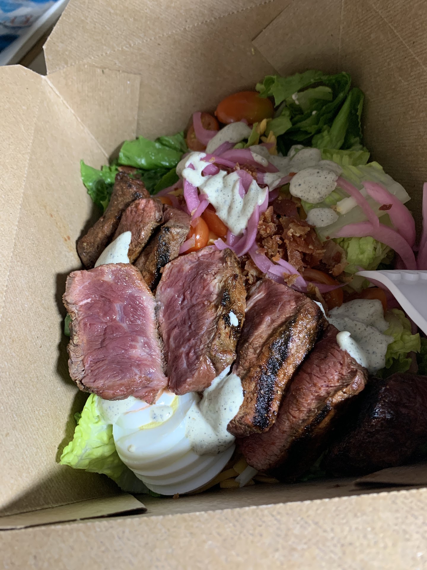 Read moreLazy afternoon at the beach then an early dinner and first time at SBK... at the only occupied table with a long wait to place our orders, I noticed the chipped lip on my water glass. Backlit by the low sun, others were noticeable on nearby tables. I told our server. She pulled mine and one at the next table. She said they had a bad batch and were waiting for replacements, shrugged and walked off. I could still see other chipped rims from where I sat. Looking up I saw a broken ceiling lamp. It had large pieces of glass pointing down at my wife's head. She moved to the next seat. Behind her in the corner were two glass vases holding dead flowers draped down the sides. Food arrived. Looked nice, except for a limp brown leaf of lettuce on top. I set it aside and took a bite from under the vinaigrette poured over the top. Limp wilted greens. I was hungry so ate anyway. At least the weren't slimy. Chicken Shawarma was good. My wife's Caesar with salmon was okay, dressing bland, salmon dry but edible. Finishing up, a woman dressed like a manager or lead server walked in and asked how our meals were. I shrugged and said, "fair." She replied, "good enough," and walked on. Our experience? Meh,...