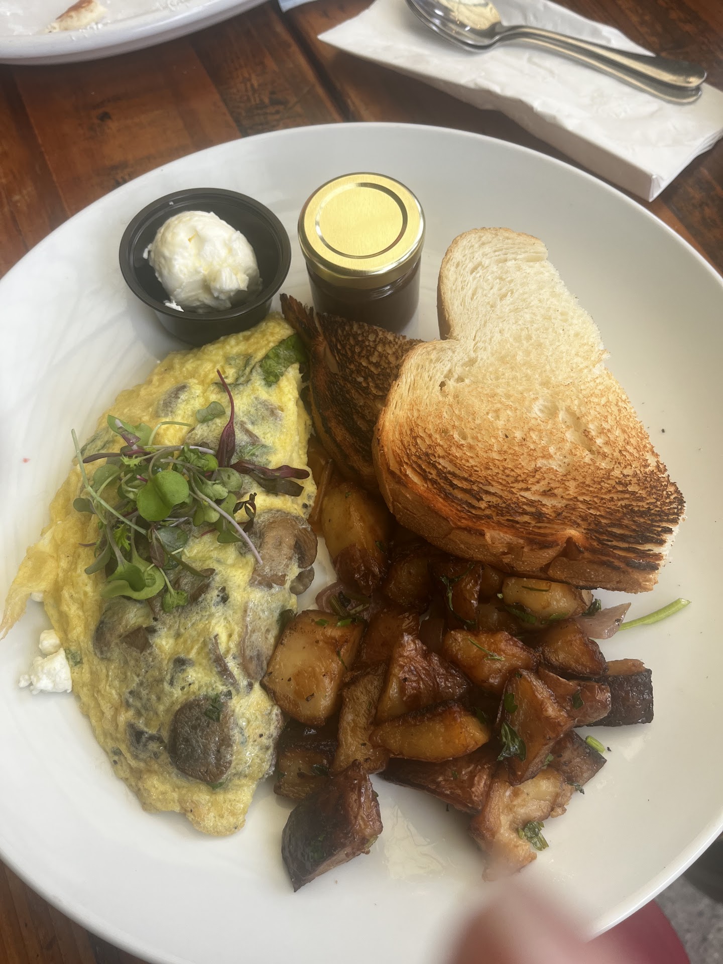 I had such a great meal here. The atmosphere was relaxed and friendly, perfect for a weekend brunch with family. I ordered the mushroom omelet with crispy breakfast potatoes and toast, and everything tasted fresh and homemade. The potatoes were golden and perfectly seasoned, and the omelet was packed with mushrooms and herbs, with just the right amount of cheese.