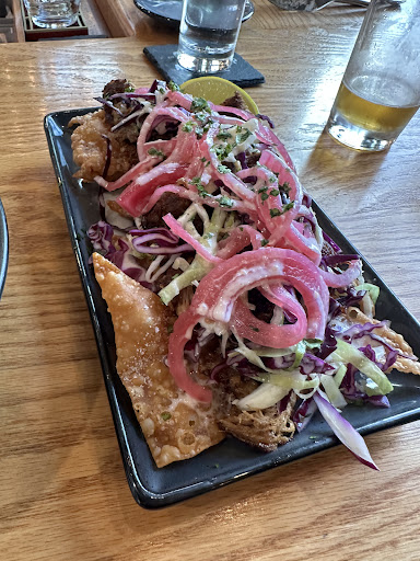 We got a quick reservation and they took a party of two on the spur of the moment. We arrived and had a quick beer at the bar, a Panty Dropper I do recall, it was rich, and delicious. Taster of a stout and headed up to gorgeous view. We had requested a server who was already booked. The place was filling quickly. We ordered a glass of Argentine Pinot. Omg it was so delish, smooth, a touch dry and superb. We ordered two starters and they were out of Oysters so early in the evening. We had a house salad and Caprese salad to start. Both excellent choices. Fresh, flavorful and we shared. My husband hates tomatoes but ate the fresh ones in my salad. We then had a Ribeye and Shwarma Chicken dish. Both great choices! Steak was cooked and seasoned to perfection, the chicken was herby, rich and spiced like the Indian dish you would want it to be. We shared a Oregon Pinot with our meal, it was good and reasonable. Pana Cotta to finish and it was light, fresh and perfect ending. Meal and service was 10 out of 10. Try it, worth the $$$. Sorry about my...