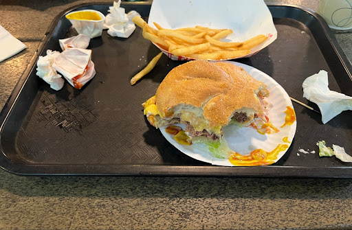 We ate...and swatted away flies the whole time. My husband said his burger tasted like the frozen kind and wasn't very good. Both of us agreed the fries were good, but that was about it.