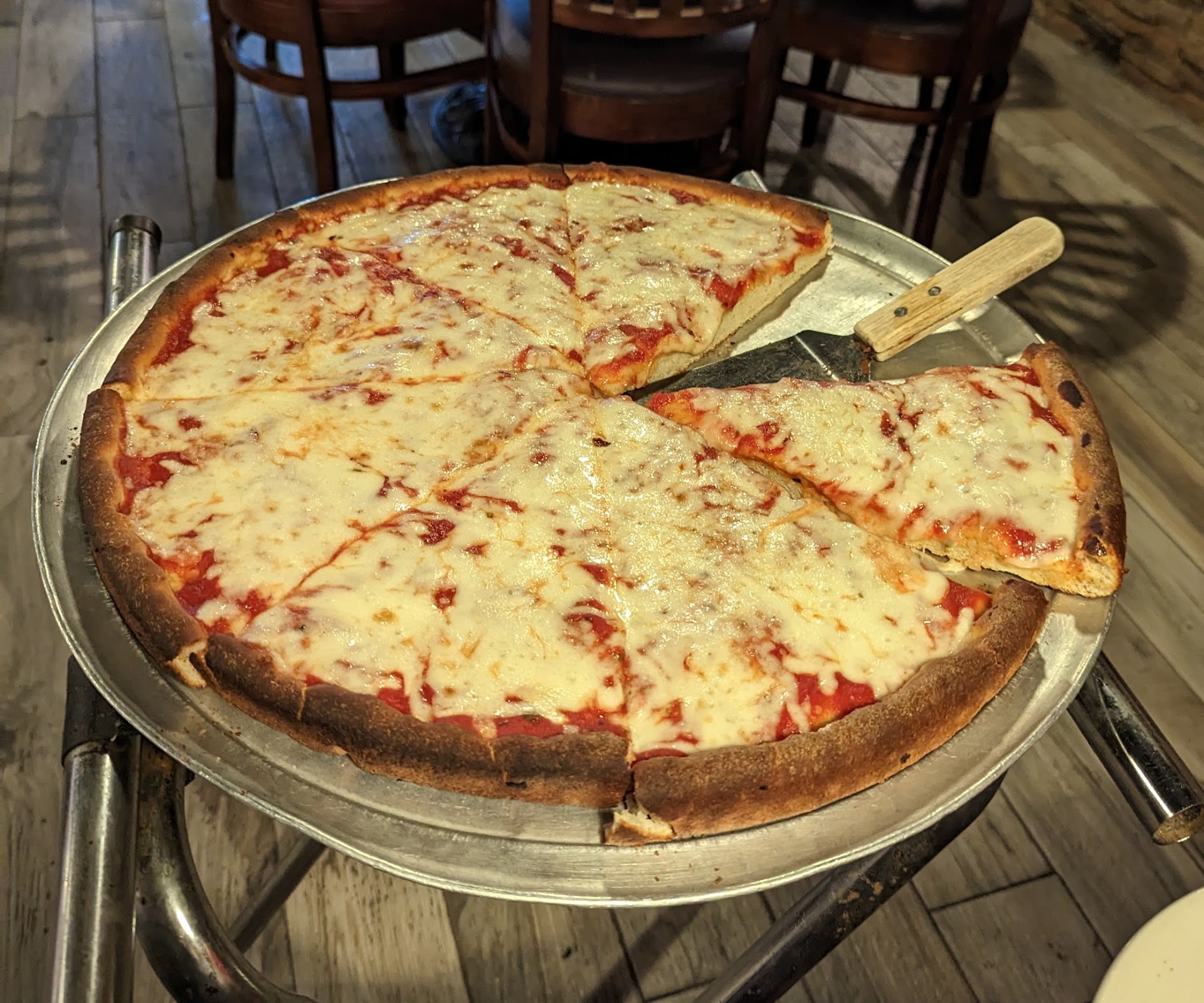 Read moreIf you’re looking for what most people would consider a Chicago style pizza you will be disappointed. We ordered a plain cheese pizza, spinach salad and a Chicago style pizza. The plain cheese pizza was ok, the salad come out quick and was good. Then things went downhill from there when the Chicago pizza came out. Our waitress disappeared so I went to the front to see if the issue was on our ordering or if they delivered someone else’s pizza on mistake. I found it was neither as this really was their version of a Chicago style pizza. I can get regional differences in things as that’s what makes visiting pizza places across the globe interesting. What I don’t get and what brings the low review was the reaction from the person in charge at the front with my questions. After I described what I was expecting with a Chicago style pizza he got defensive and said he had never heard of anything like that called Chicago style in his 20 years working. What they delivered to the table was a burned crust pizza with 3/4th an inch cardboard crust, and a person in charge whose response to asking about the pizza we received was rude and gruff. Hopefully this helps others not make the same mistake we did with "Chicago style". Many other great pizza places in the area like Russo's, Nicola's, and Buckingham that all are better in the pizza side and a pleasure to eat at. Just ask Siri or Google "What is a Chicago...