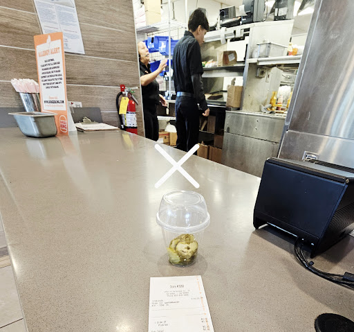 One of the workers was about to provide the pickles when JONATHAN THE MANAGER takes this very nice lady, physically turns her away from me and tells her no AFTER I said I'd pay for the pickles that ONLY ONE pickles was ON THE SANDWICH to begin with!!! I'm literally standing there at the counter waiting to pay. I told him several times that I'd pay for it, including as the manager is turning the lady away as she is bringing it to me!